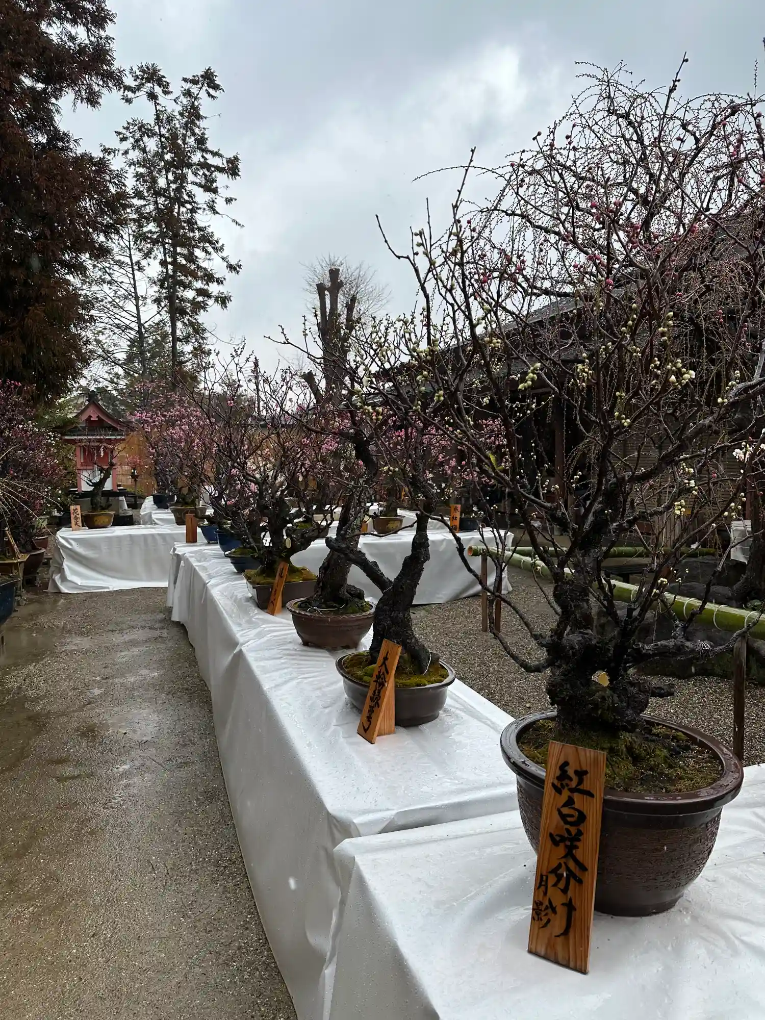 盆梅展は入場に500円かかりますが、入らなくてもある程度は梅を楽しめます
