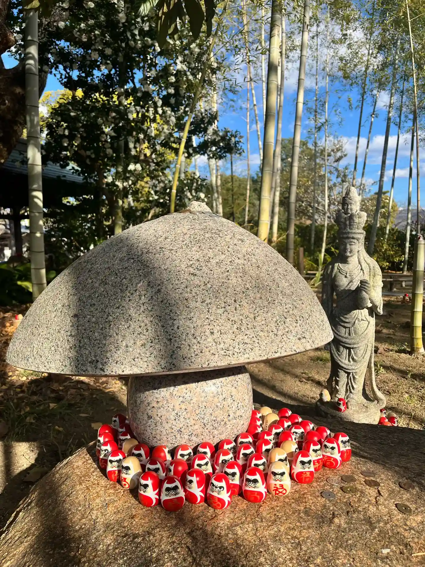 綺麗な山門をくぐり、境内をいろいろ拝見させて頂こうとふと見ると…達磨たちがたくさん並んでいました^ ^