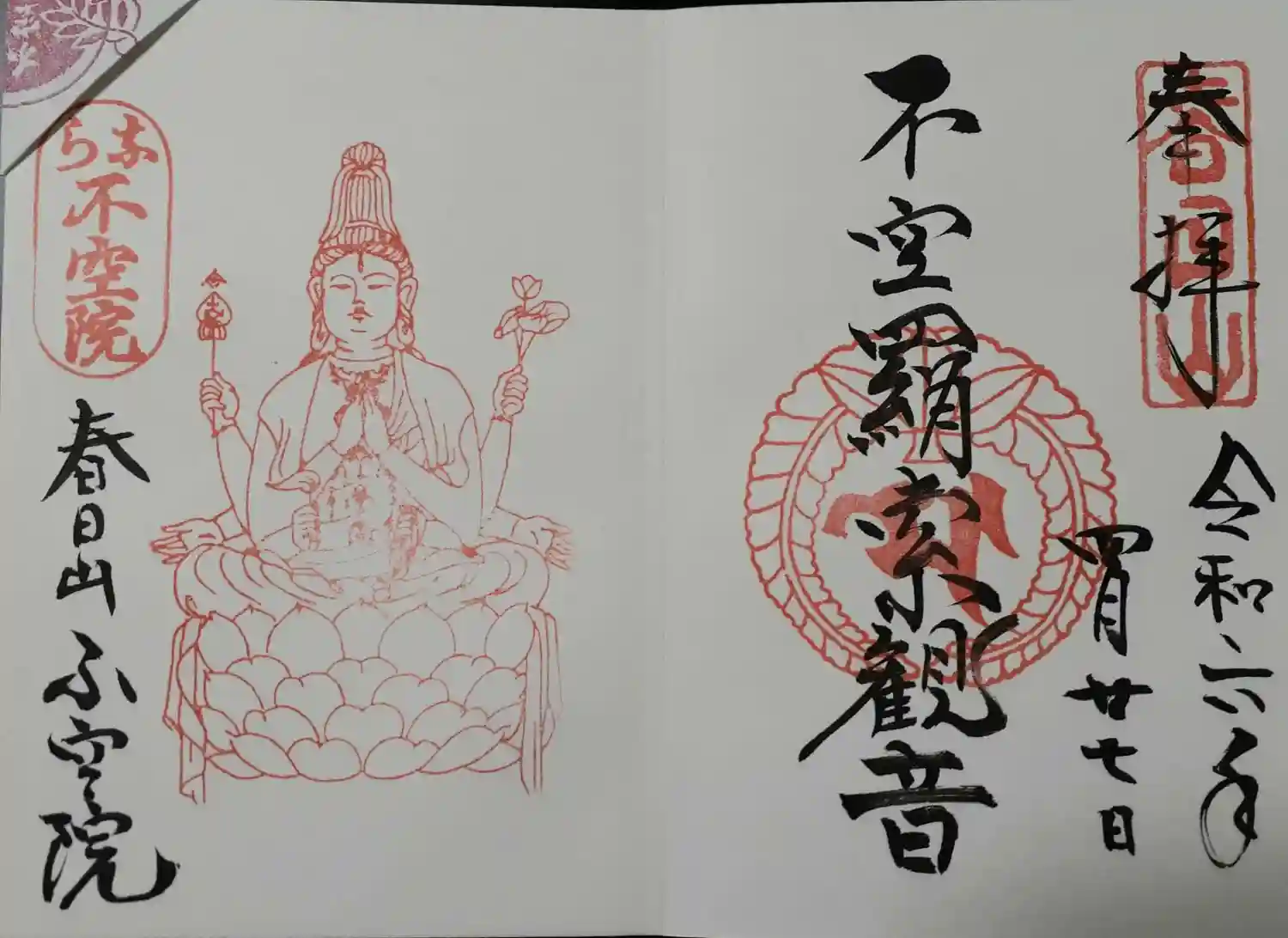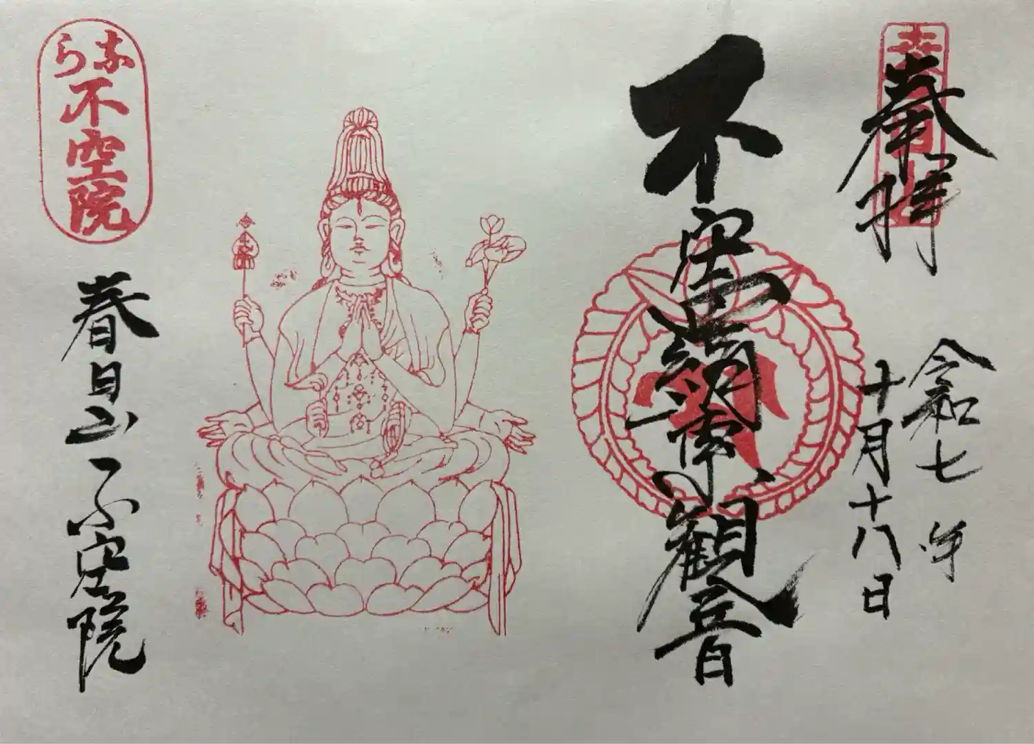 「不空羂索観音」御朱印