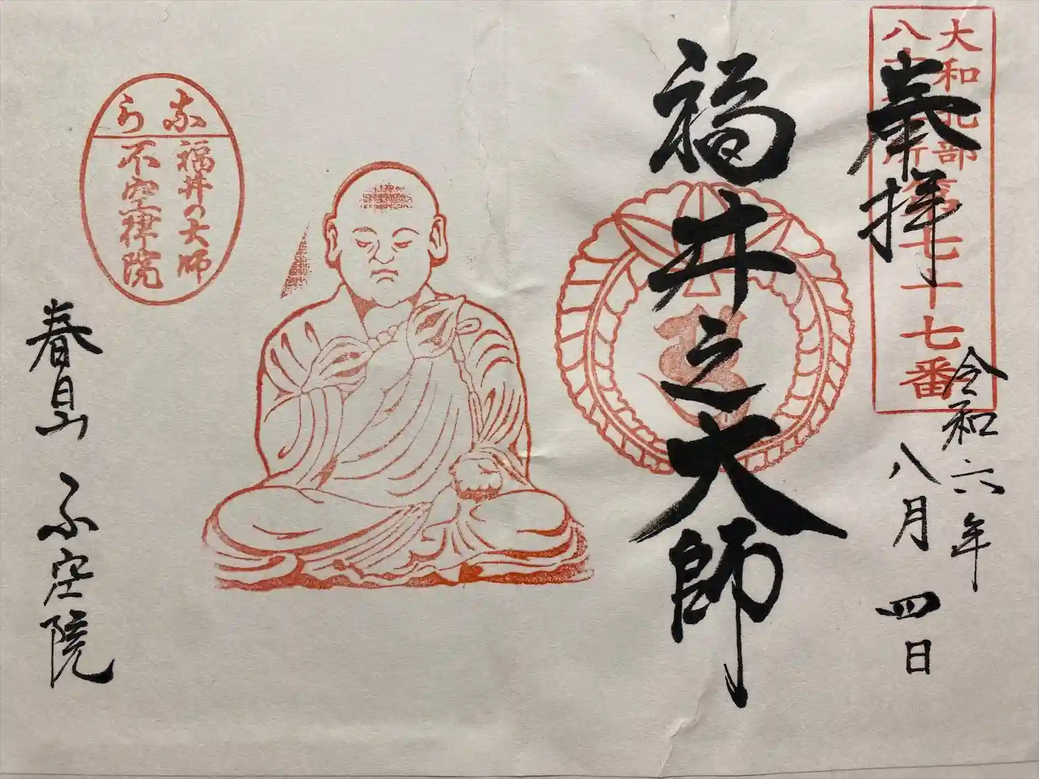 寺号標。福井の大師とある。不空=福井なんでしょうかね?