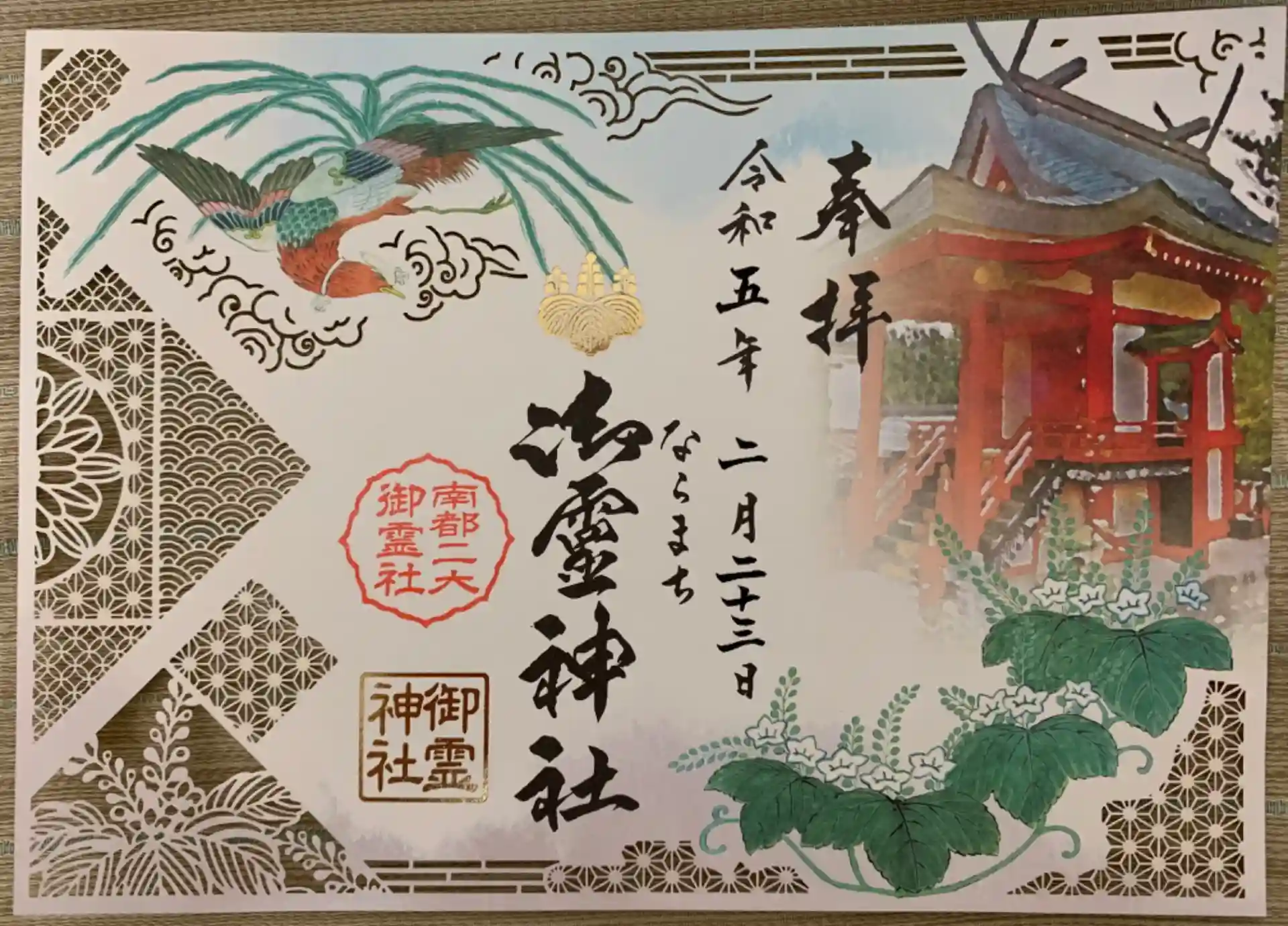疫病退散の御神威をもつ御霊神社と崇道天皇社が二社でひとつになる南都二大御霊社コラボ切り絵御朱印を頂きました。