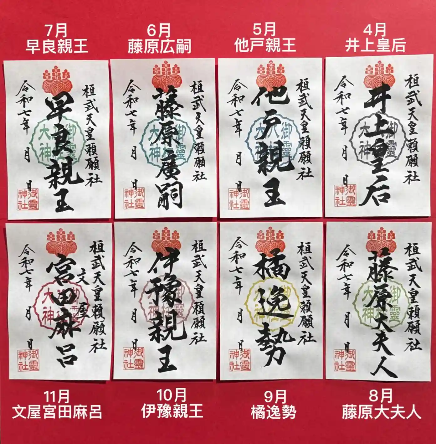 8種類すべての御朱印をお受けになった方には、「桓武天皇」の特別御朱印を授与いたします。※すべての御朱印をお受けの際に、お申し出ください。