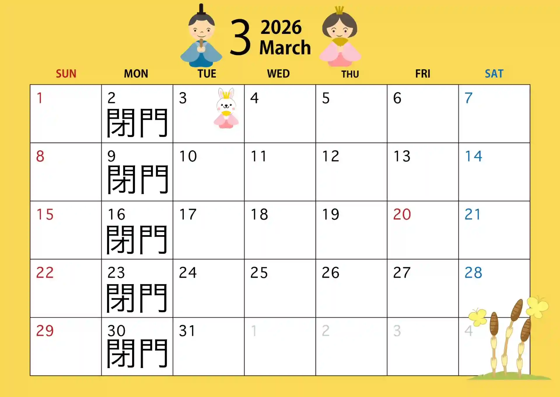 2日(月曜日)9日(月曜日)16日(月曜日)23日(月曜日)30日(月曜日)は、神社閉門日です。