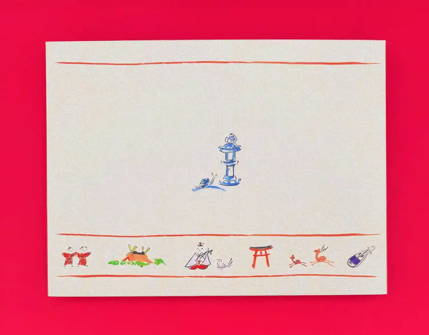 春日造りの御本殿やカタツムリの灯籠などを奈良絵で描いております。