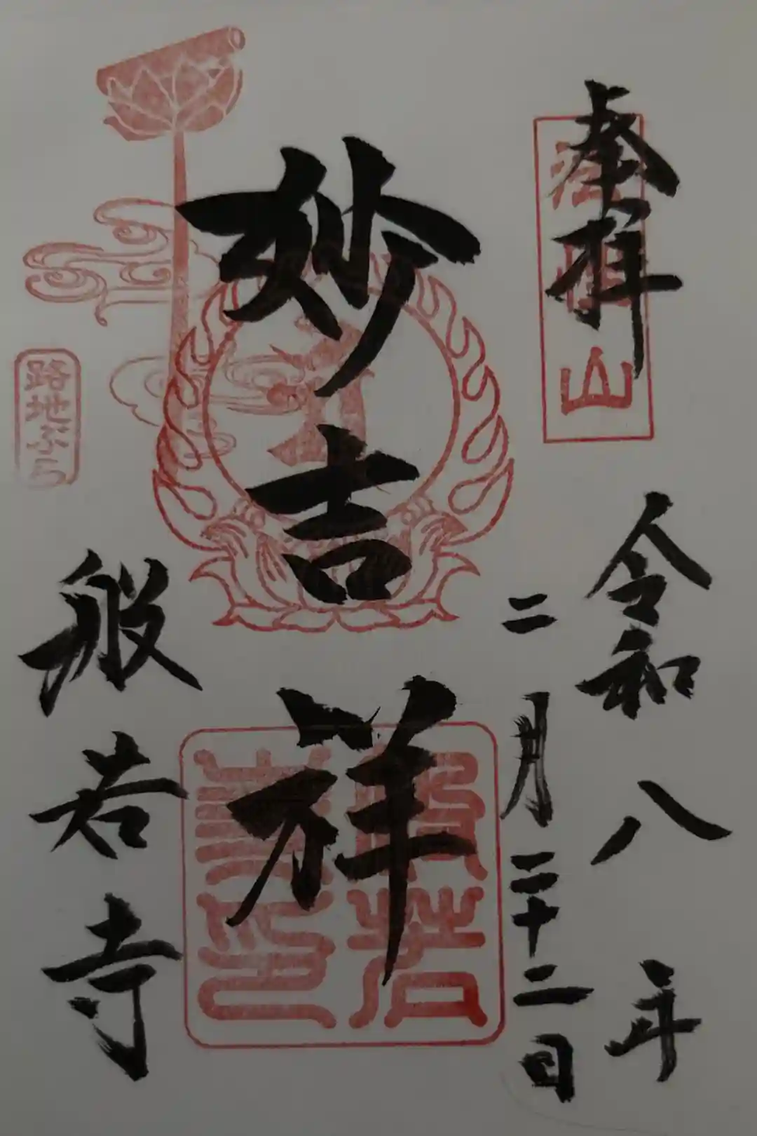 | 御朱印 | あり 御本尊文殊菩薩御朱印「妙吉祥」を始め、書き置きを含めて6種類の御朱印を拝受できます。「舎利宝塔」の御朱印は、舎利宝塔とコスモスが柔らかいタッチで描かれています。 |