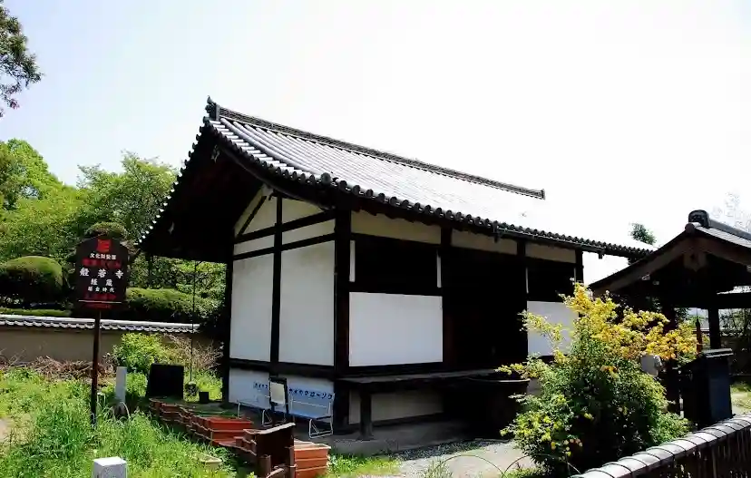 般若寺(はんにゃじ) 寺伝によると629年高句麗の僧慧灌がこの地に寺を建てたのが始まり。その後天平7年(735)聖武天皇の時、平城京の鬼門鎮護のため堂塔を造営されたと伝えられています。京都から奈良への要路にあたるため、治承の兵火で戦火をこうむりましたが、西大寺の叡尊上人により文殊の霊場として復興され、庶民救済の文殊会を盛んに開くようになりました。鎌倉期の優美な建築様式をもつ楼門〔国宝〕が残っています。楼門の奥正面に立つ十三重石塔〔重文〕は、高さ約14.2メートル。石仏を彩って咲く春の山吹、秋のコスモスなどが美しく、花の寺としても有名です。