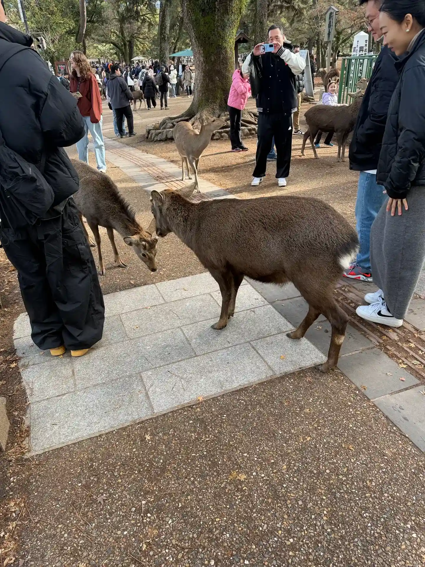 いつもは境内のあちこちにいる鹿さん達の姿はなく。奈良公園方面へ…