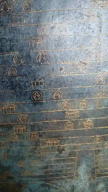 大仏様の台座である蓮ですが、その花弁に施されている線刻を近くで見られるように、花弁の一部が展示されています。