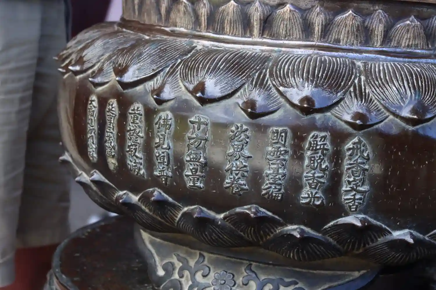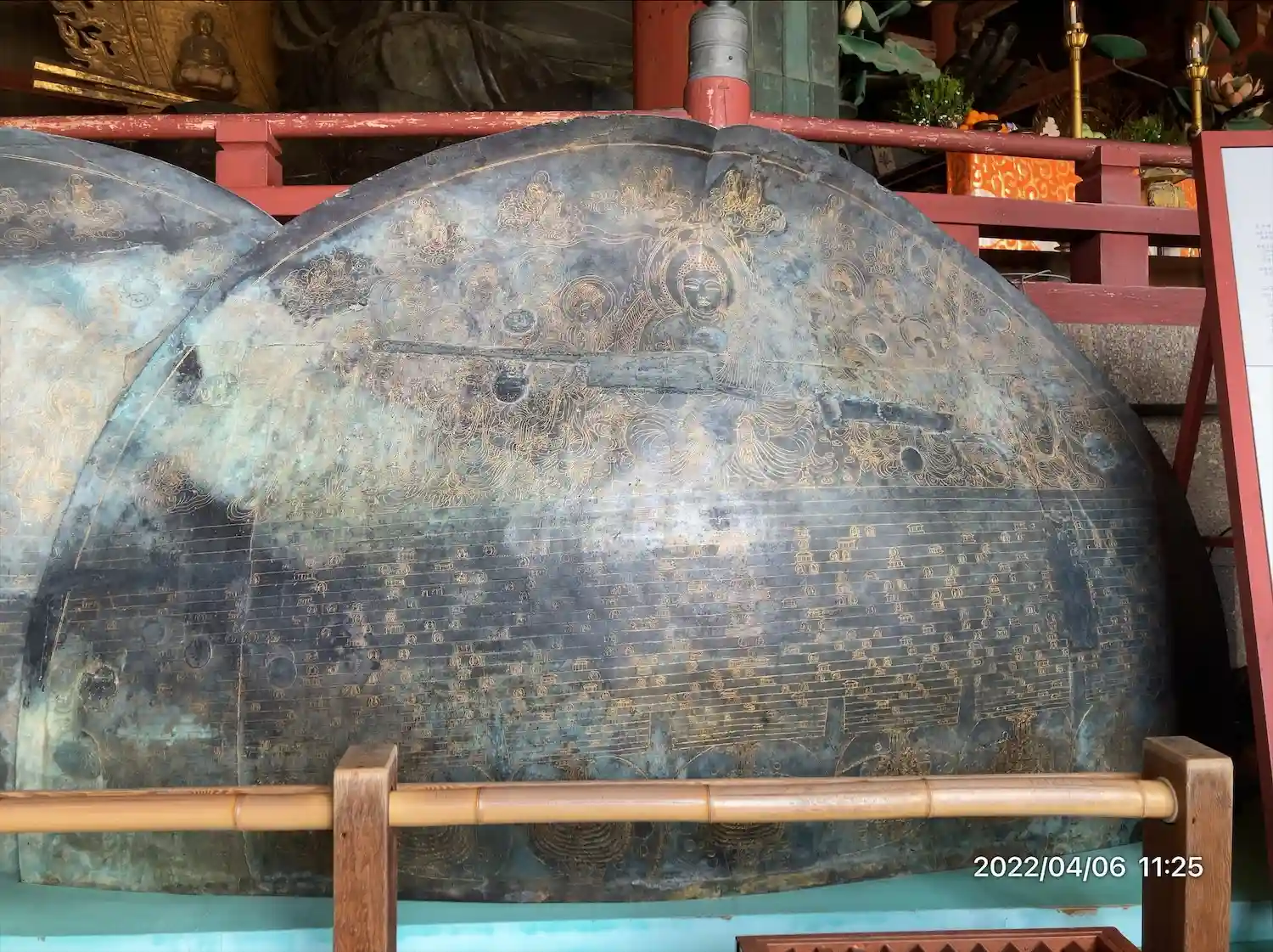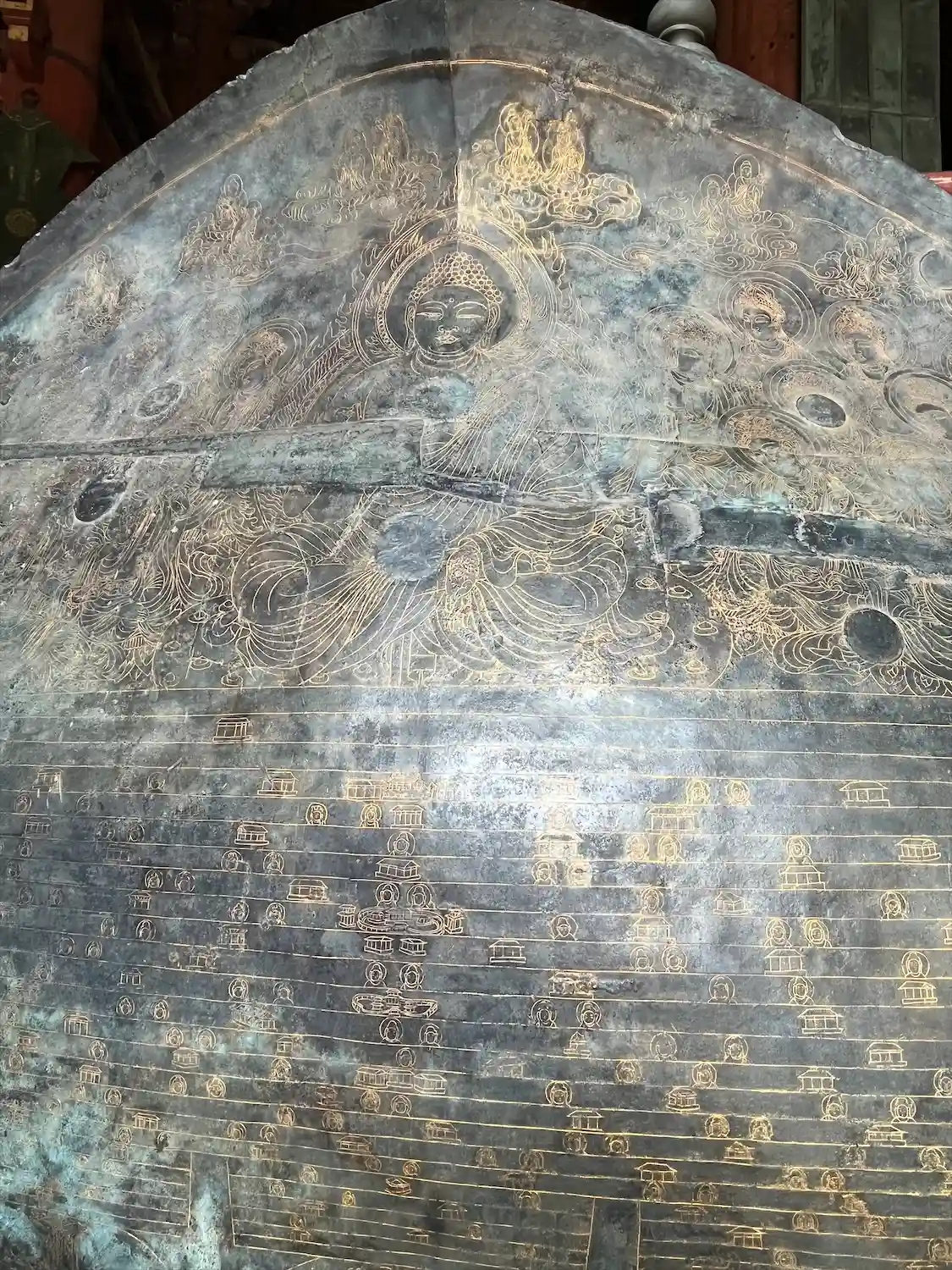 金銅八角燈籠。国宝。ほとんどの人がスルーしているが、これも立派な国宝。非常に精密な彫刻がびっしり。