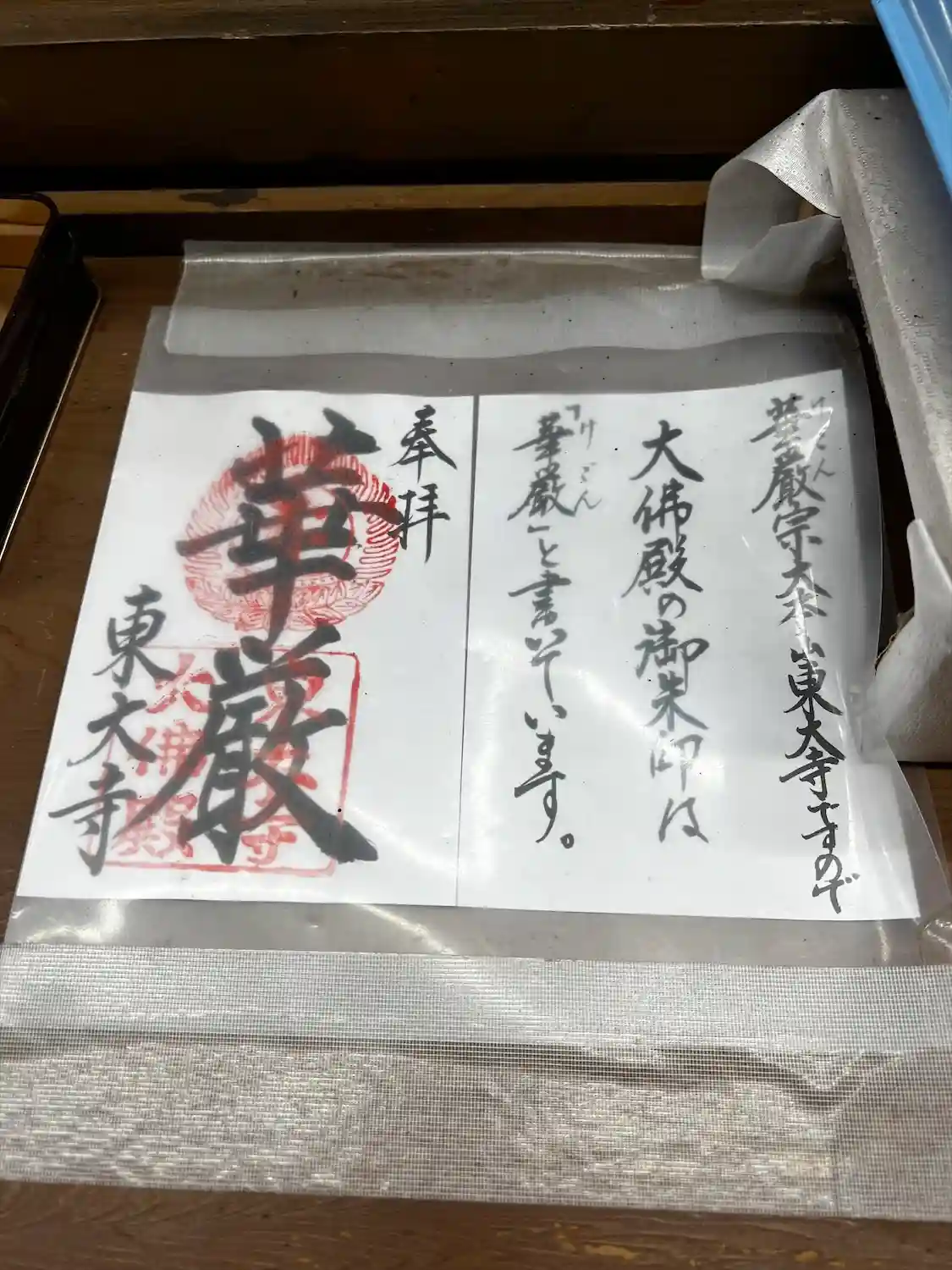大仏殿で頂ける御朱印