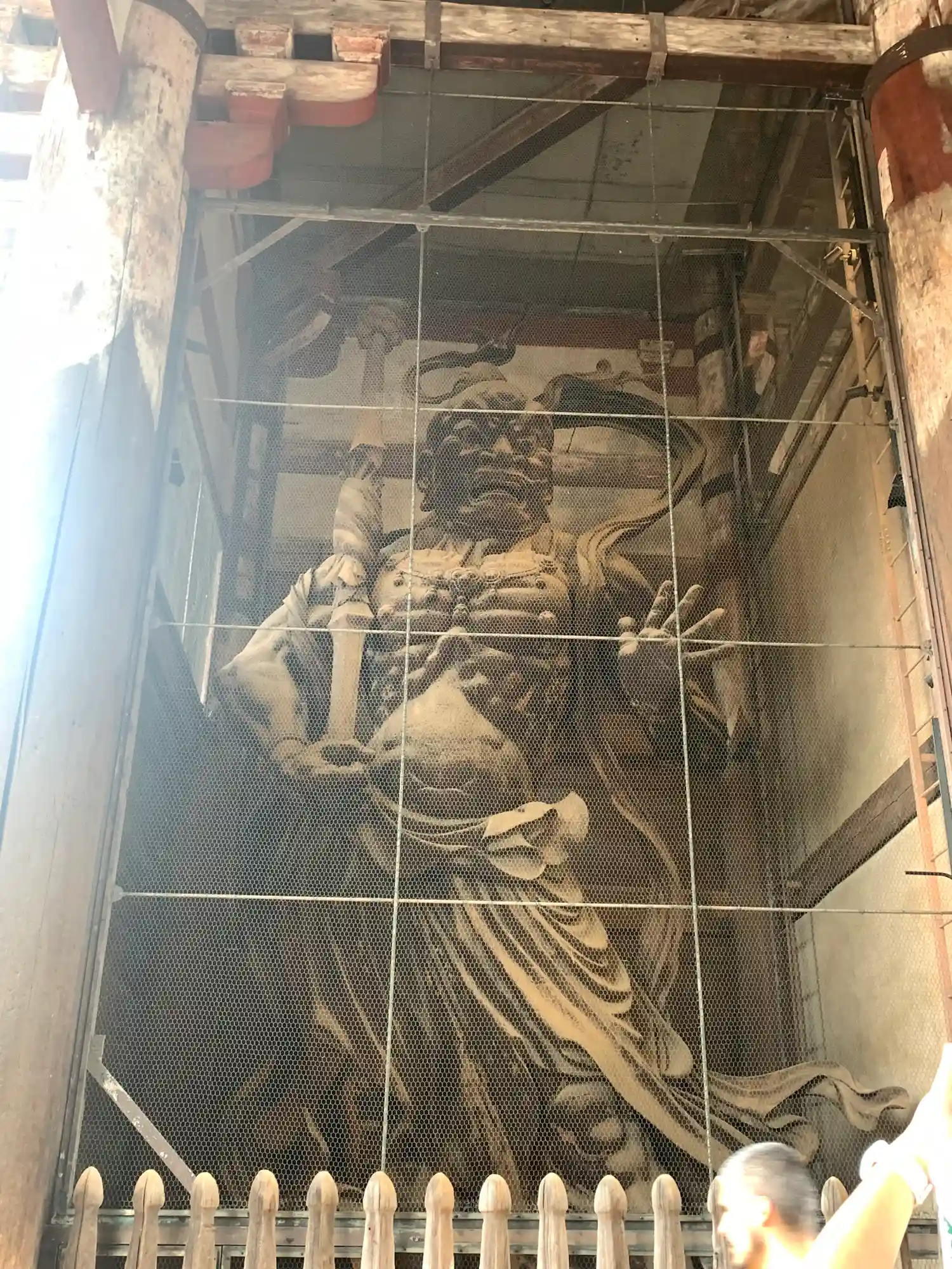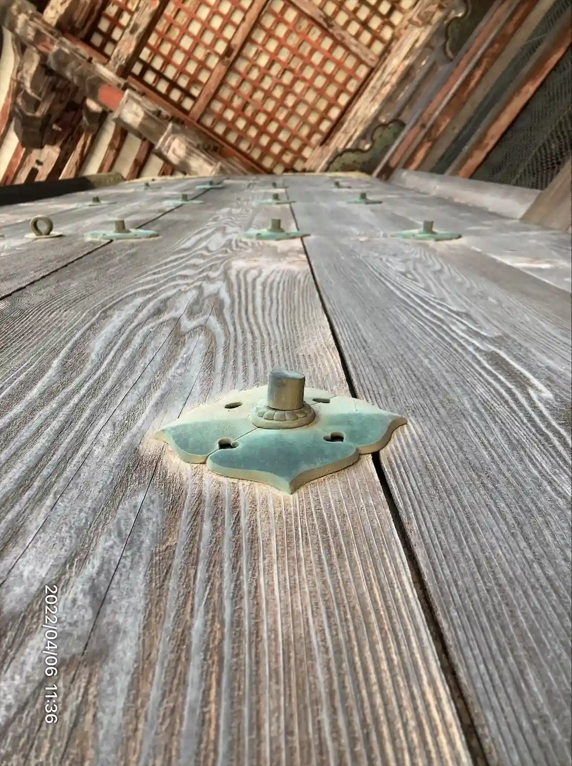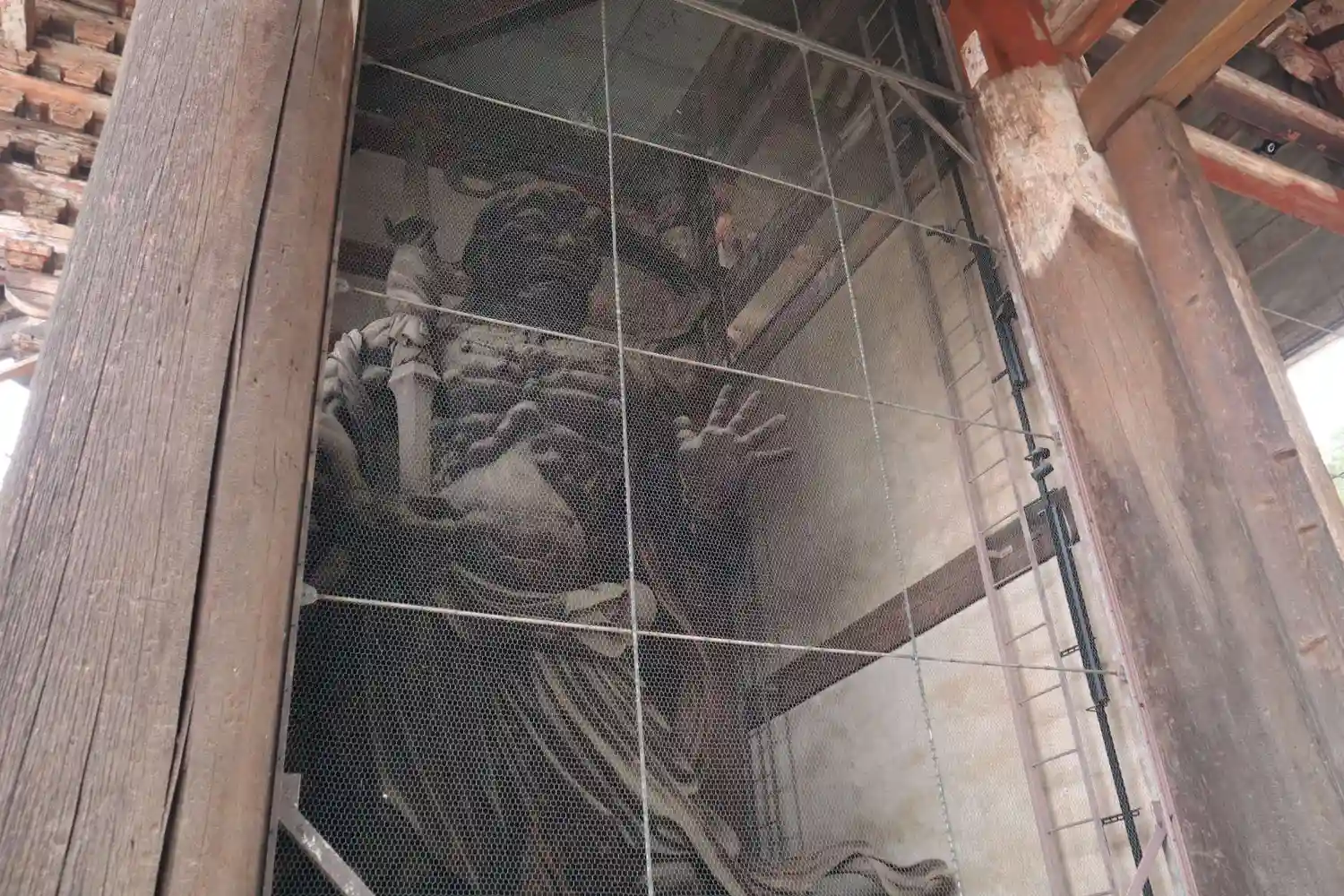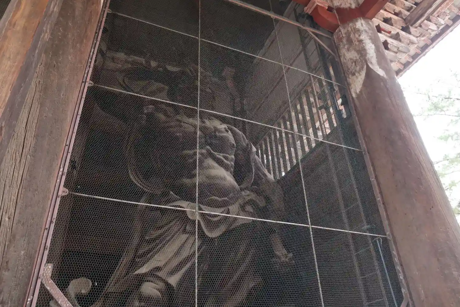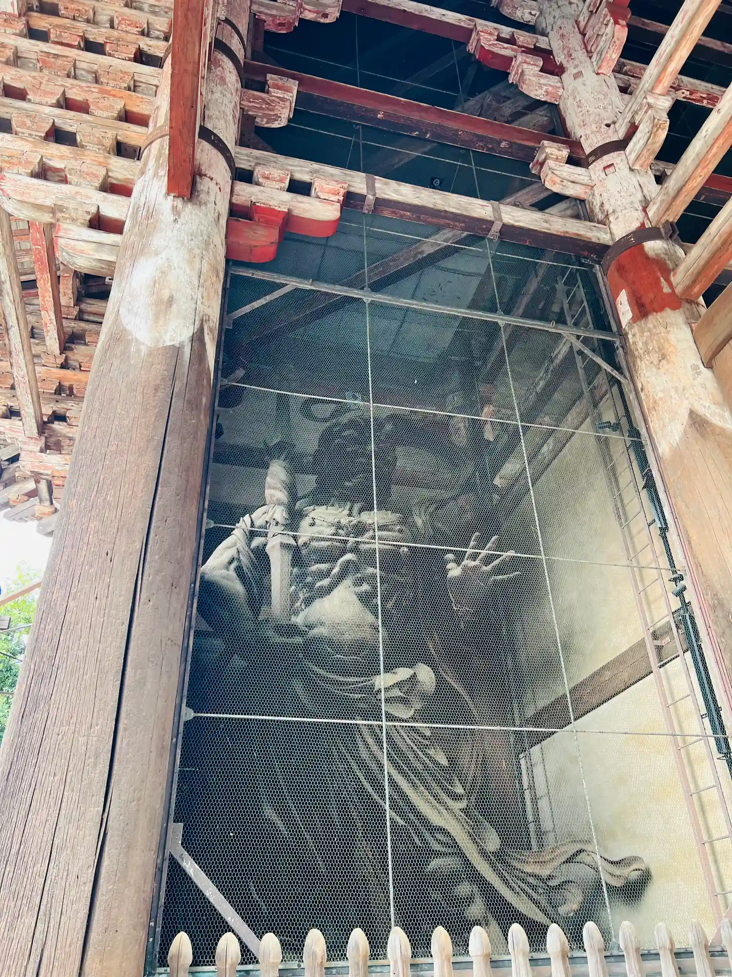大仏様では貫という水平な木材を幾重にも渡して構造強化を図っていることや、天井が吹き抜けになっている特徴があるようです。実際に門の内部を見上げるとよくわかります。