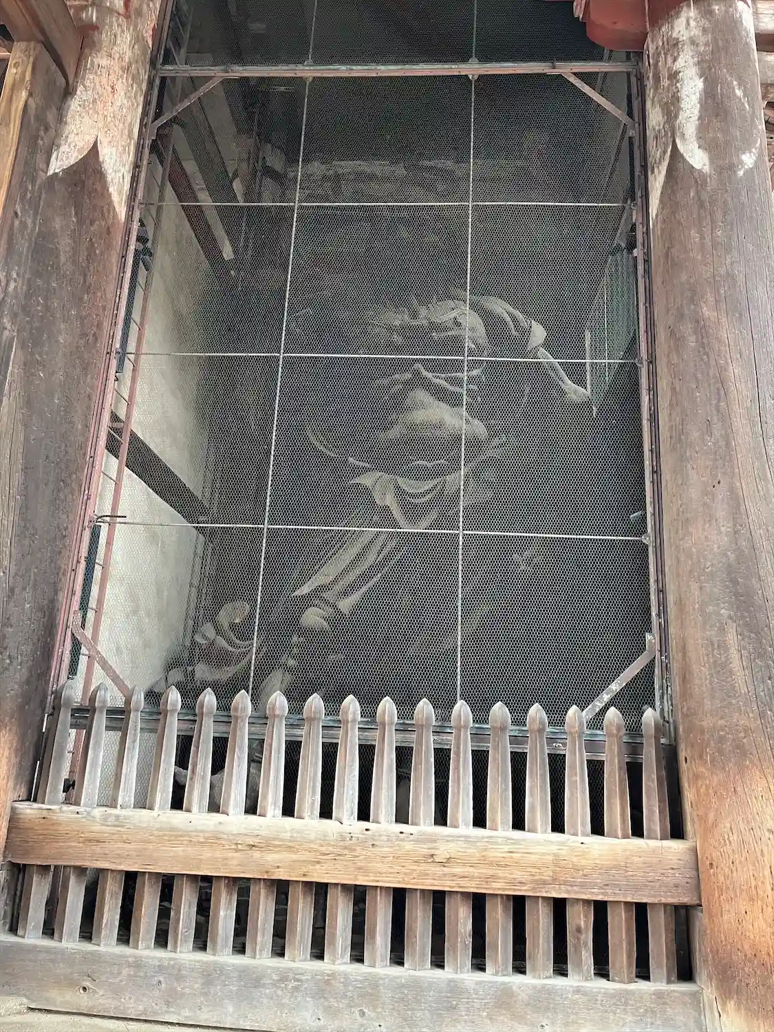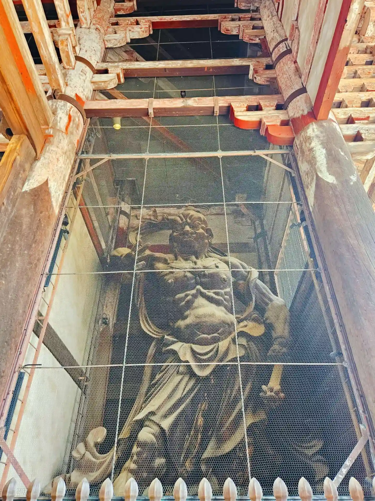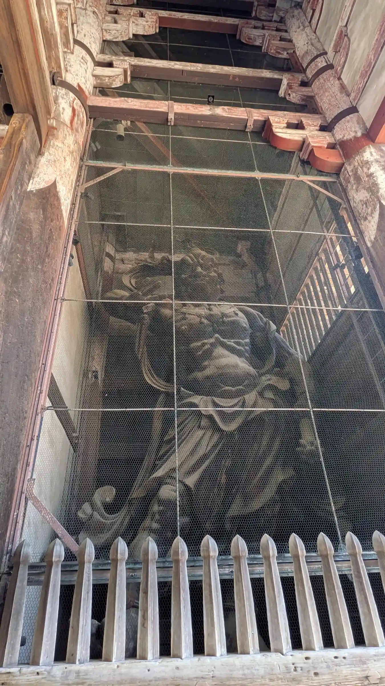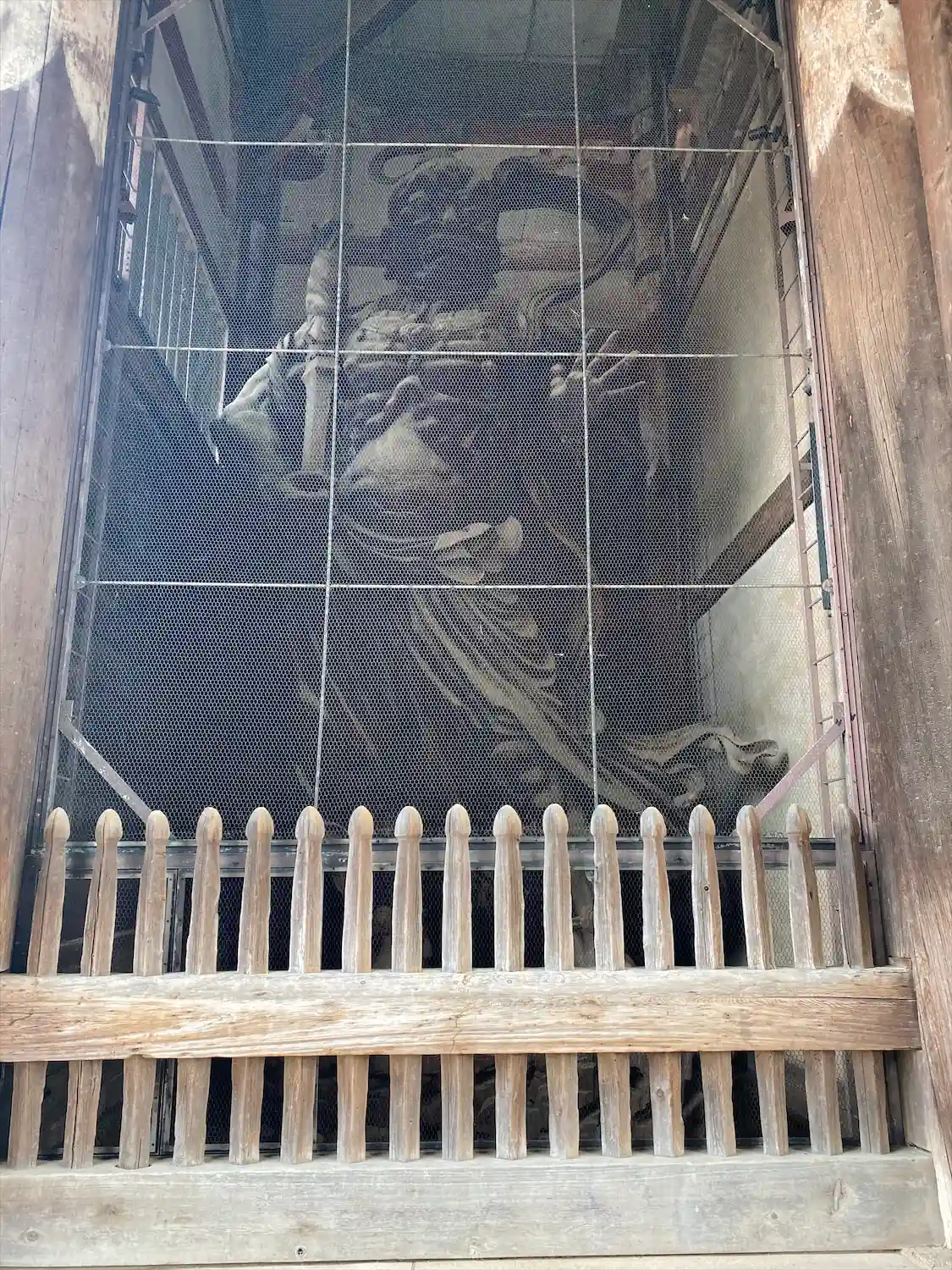 大仏様では貫という水平な木材を幾重にも渡して構造強化を図っていることや、天井が吹き抜けになっている特徴があるようです。実際に門の内部を見上げるとよくわかります。