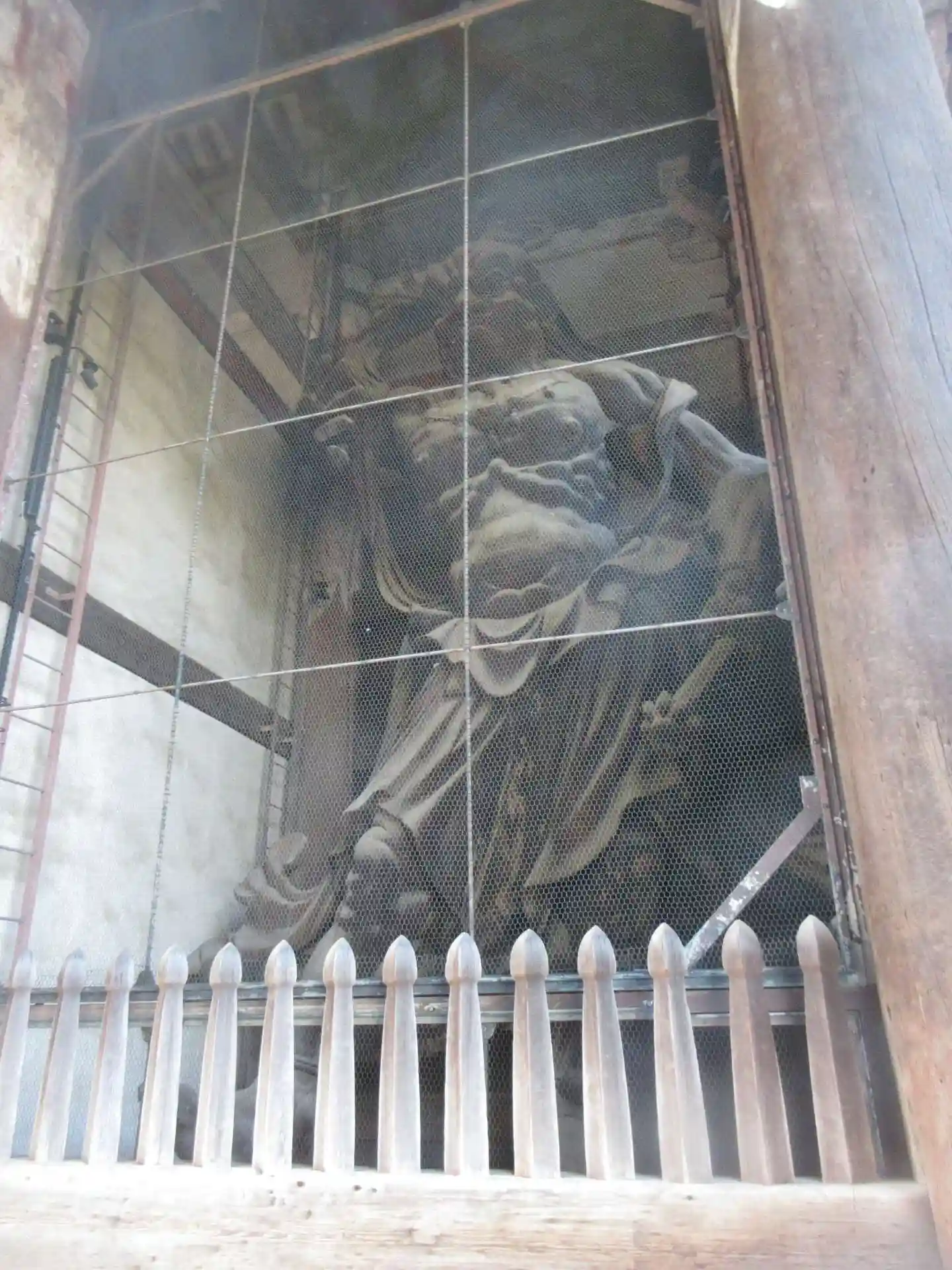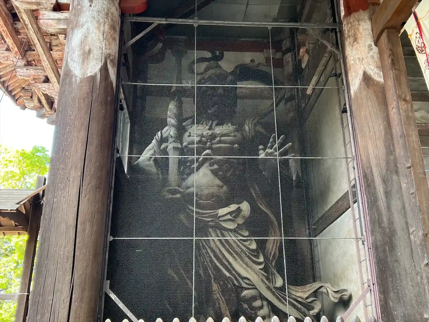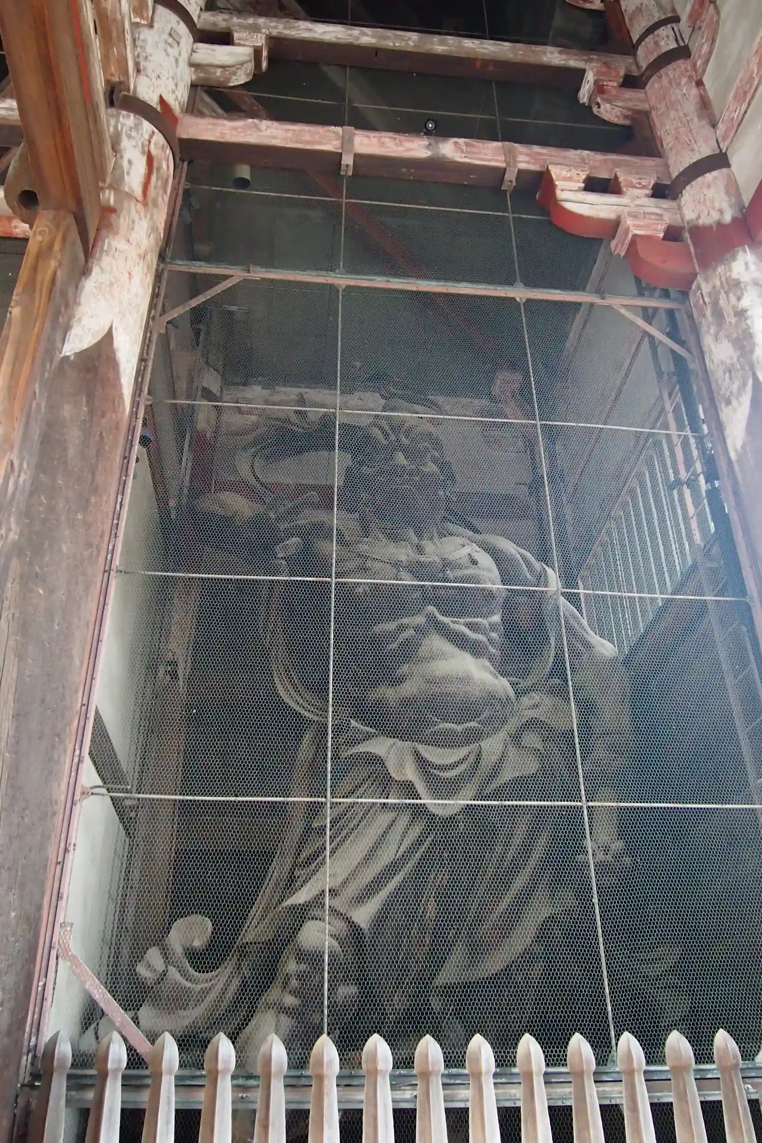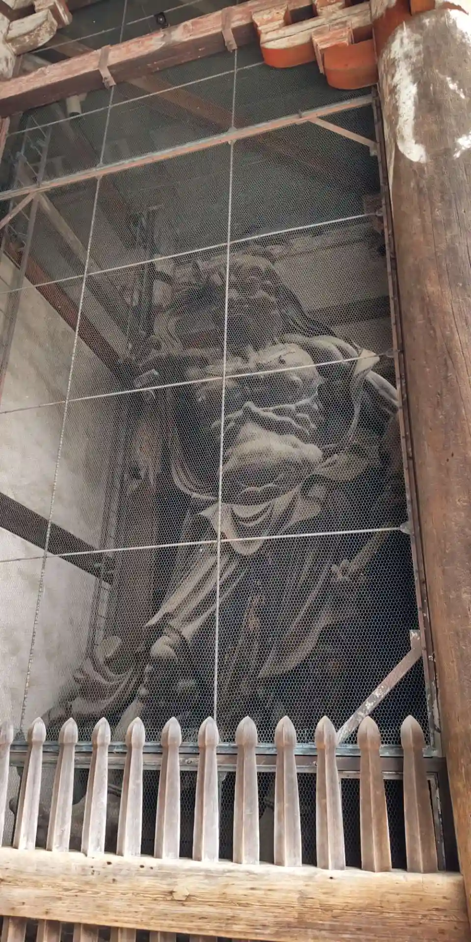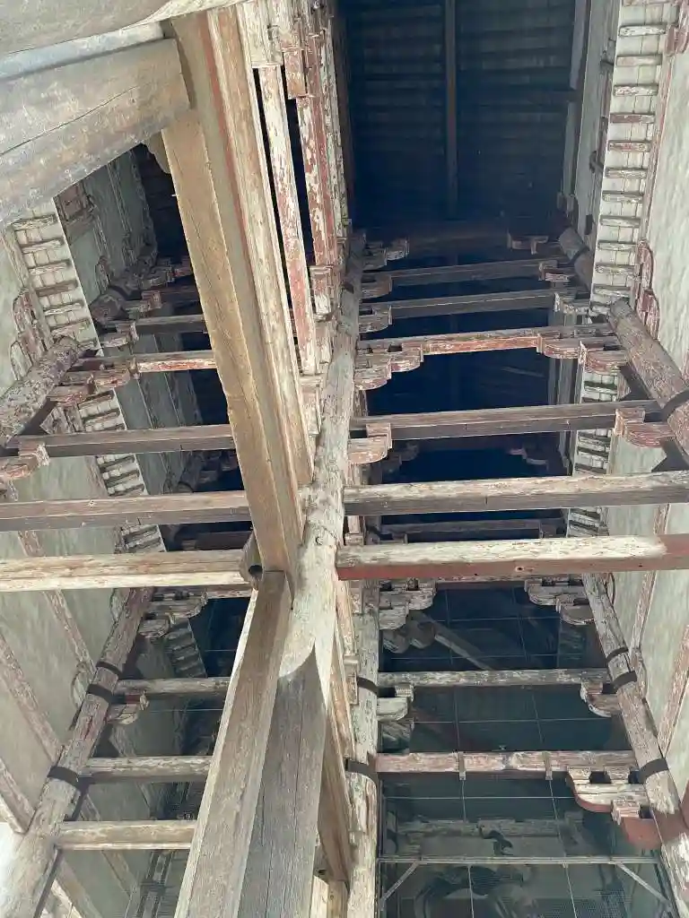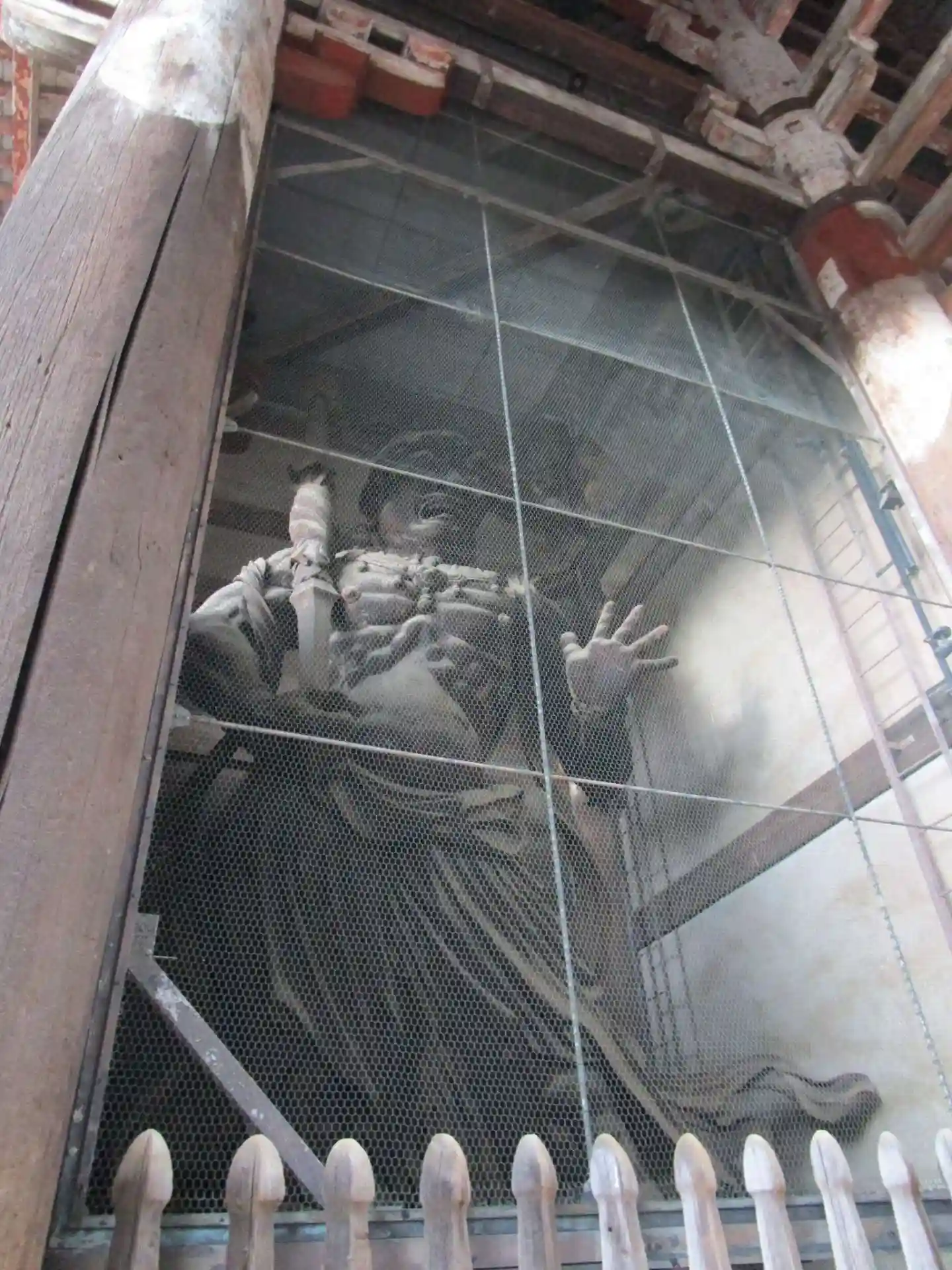 大仏様では貫という水平な木材を幾重にも渡して構造強化を図っていることや、天井が吹き抜けになっている特徴があるようです。実際に門の内部を見上げるとよくわかります。