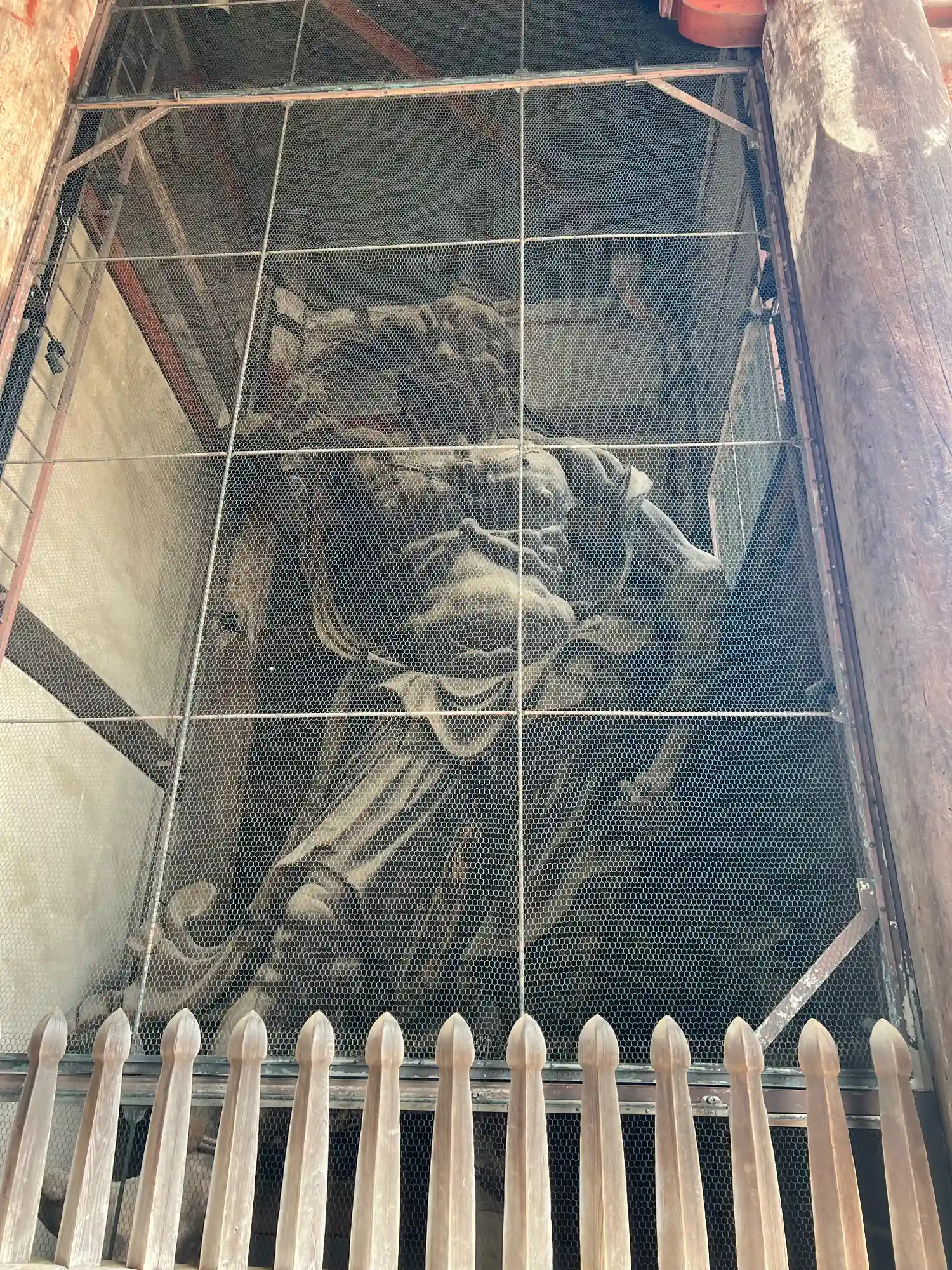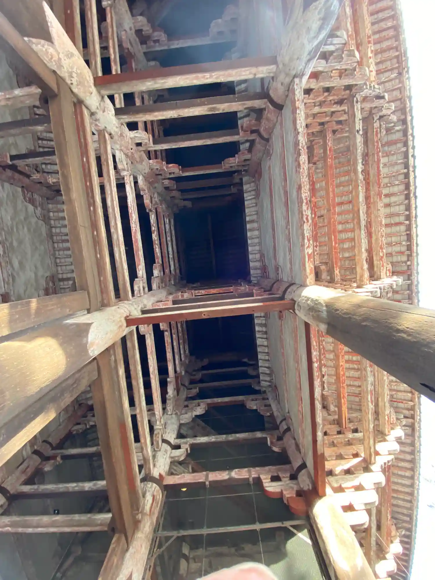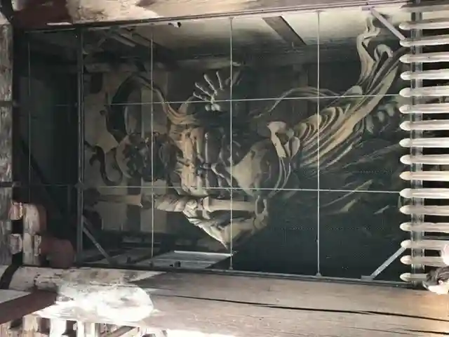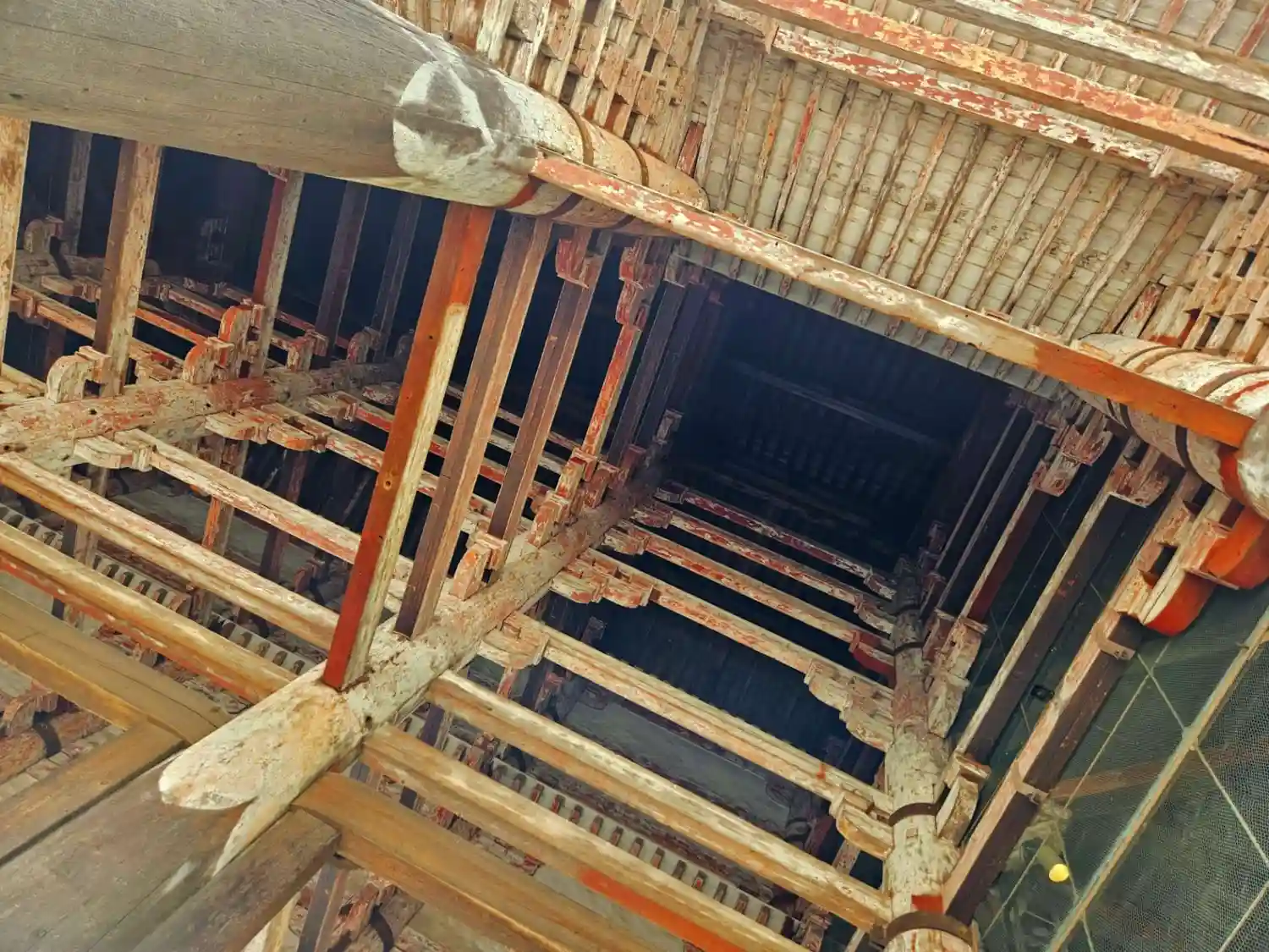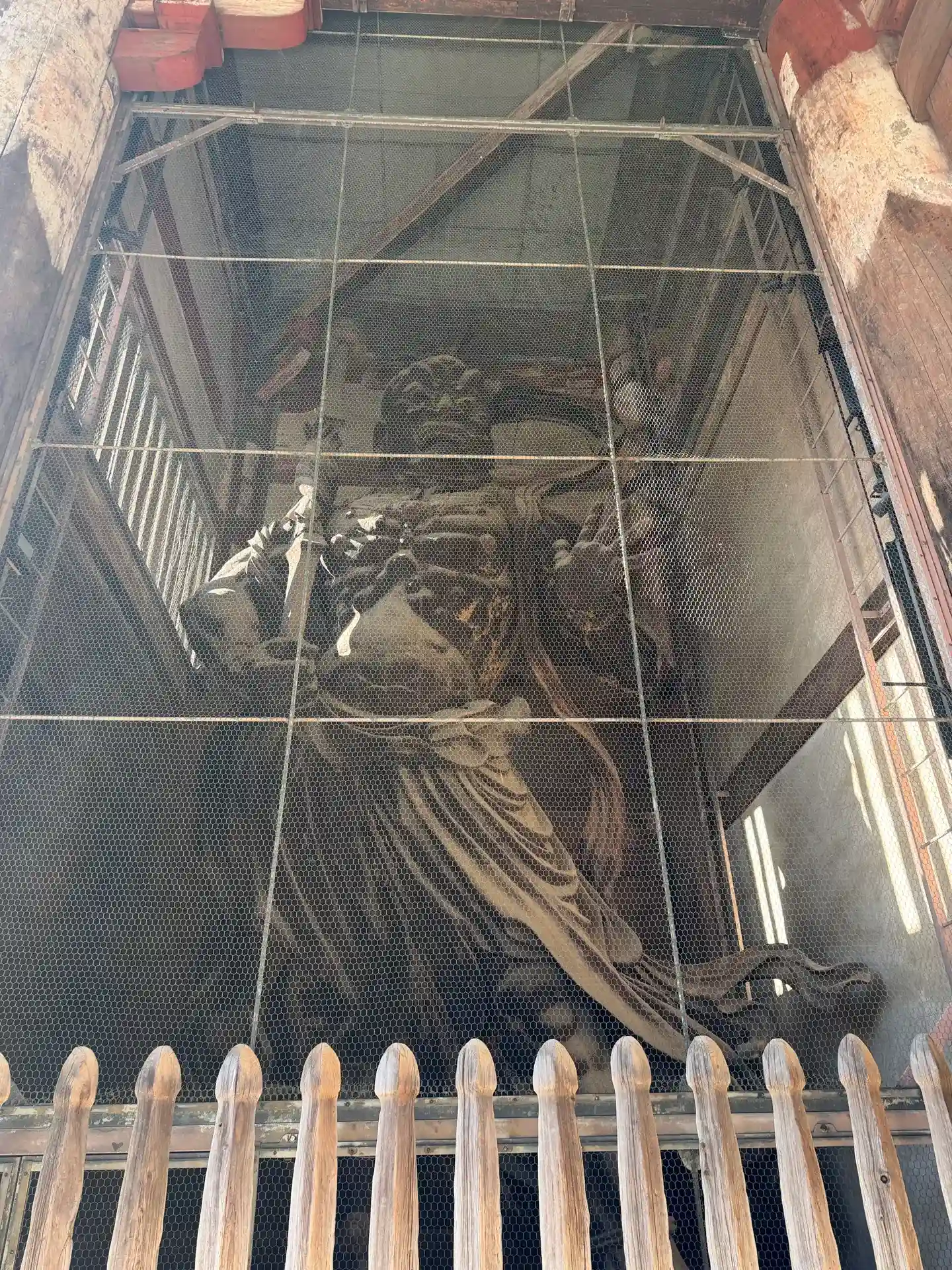 大仏様では貫という水平な木材を幾重にも渡して構造強化を図っていることや、天井が吹き抜けになっている特徴があるようです。実際に門の内部を見上げるとよくわかります。
