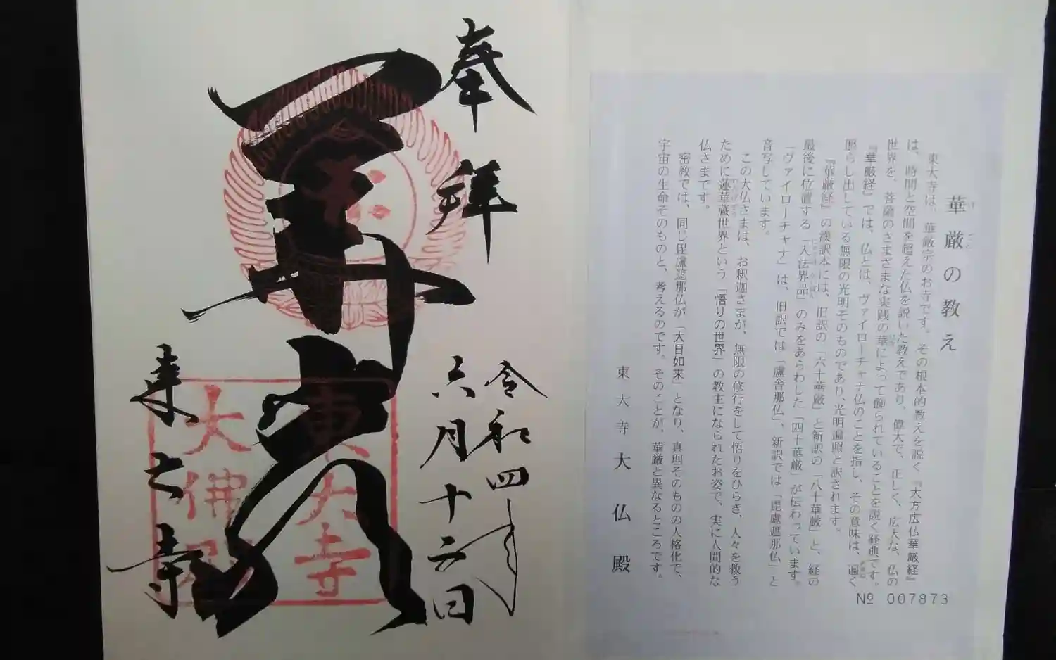 東大寺の華厳の御朱印です。