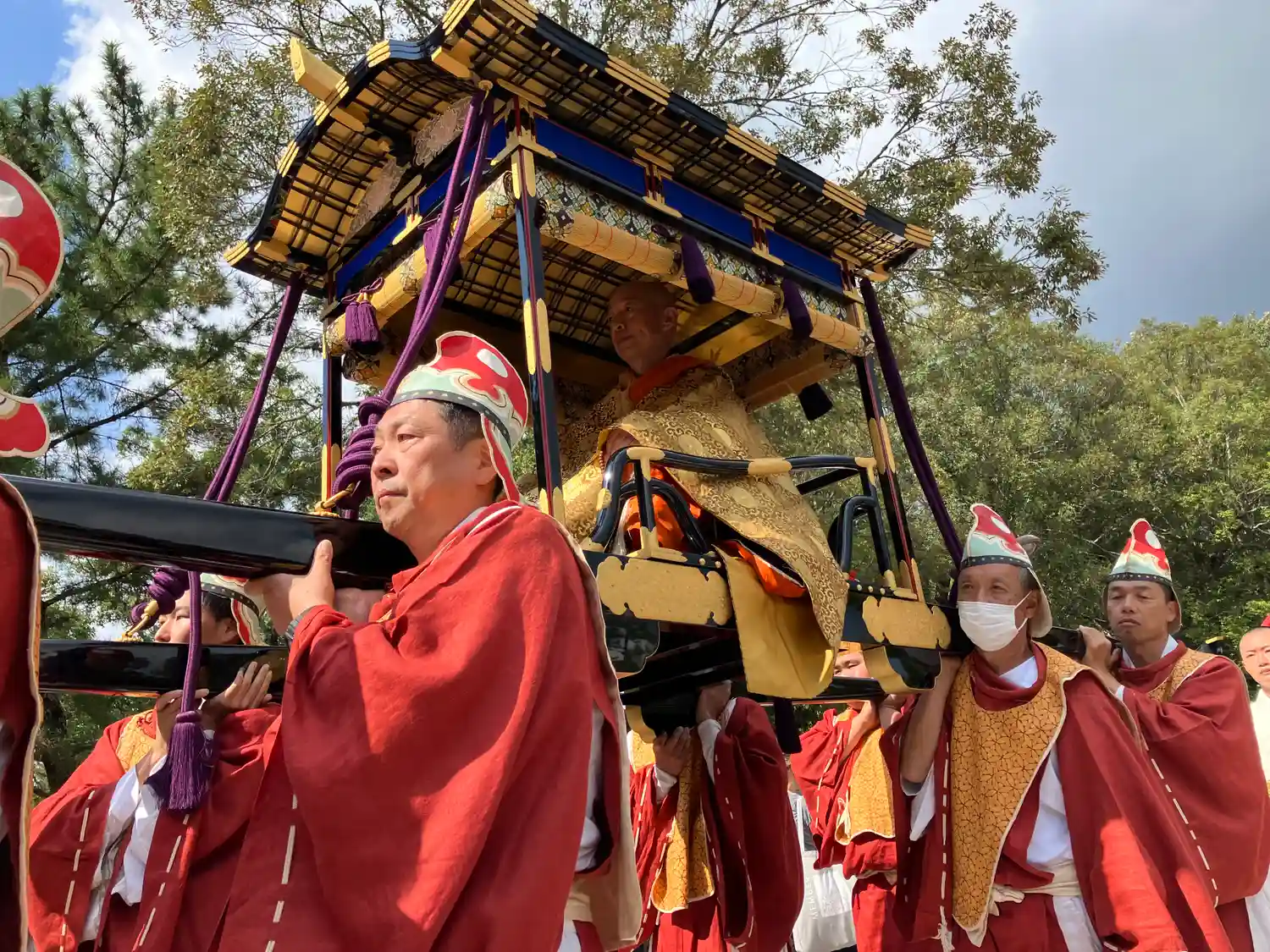 ゴンドラは下で大勢の僧侶さんが引っ張り上げてます