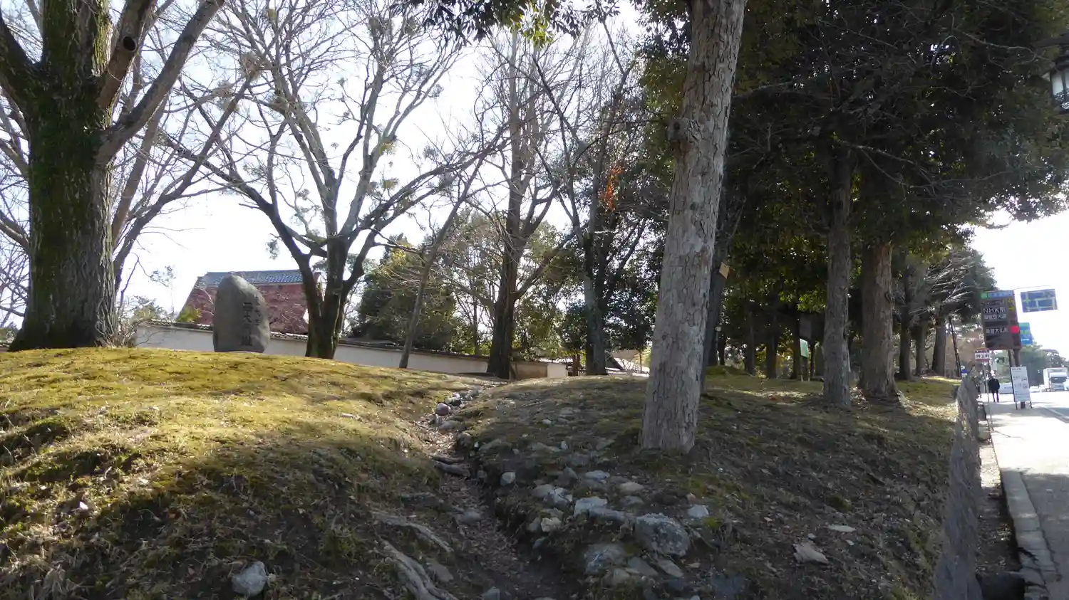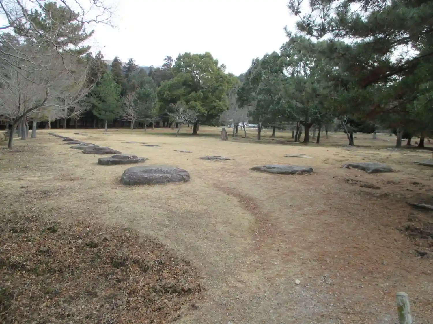 西面大路に開く中門跡の礎石。