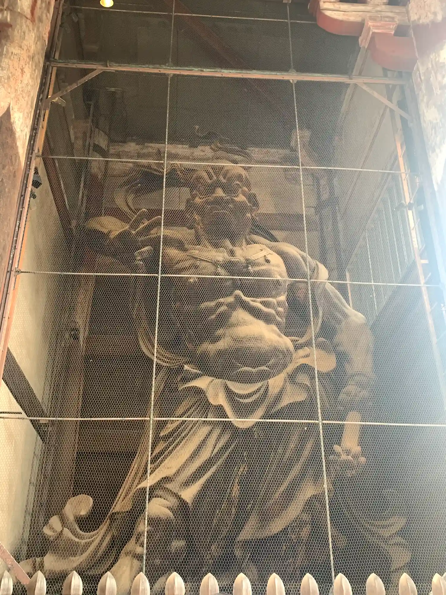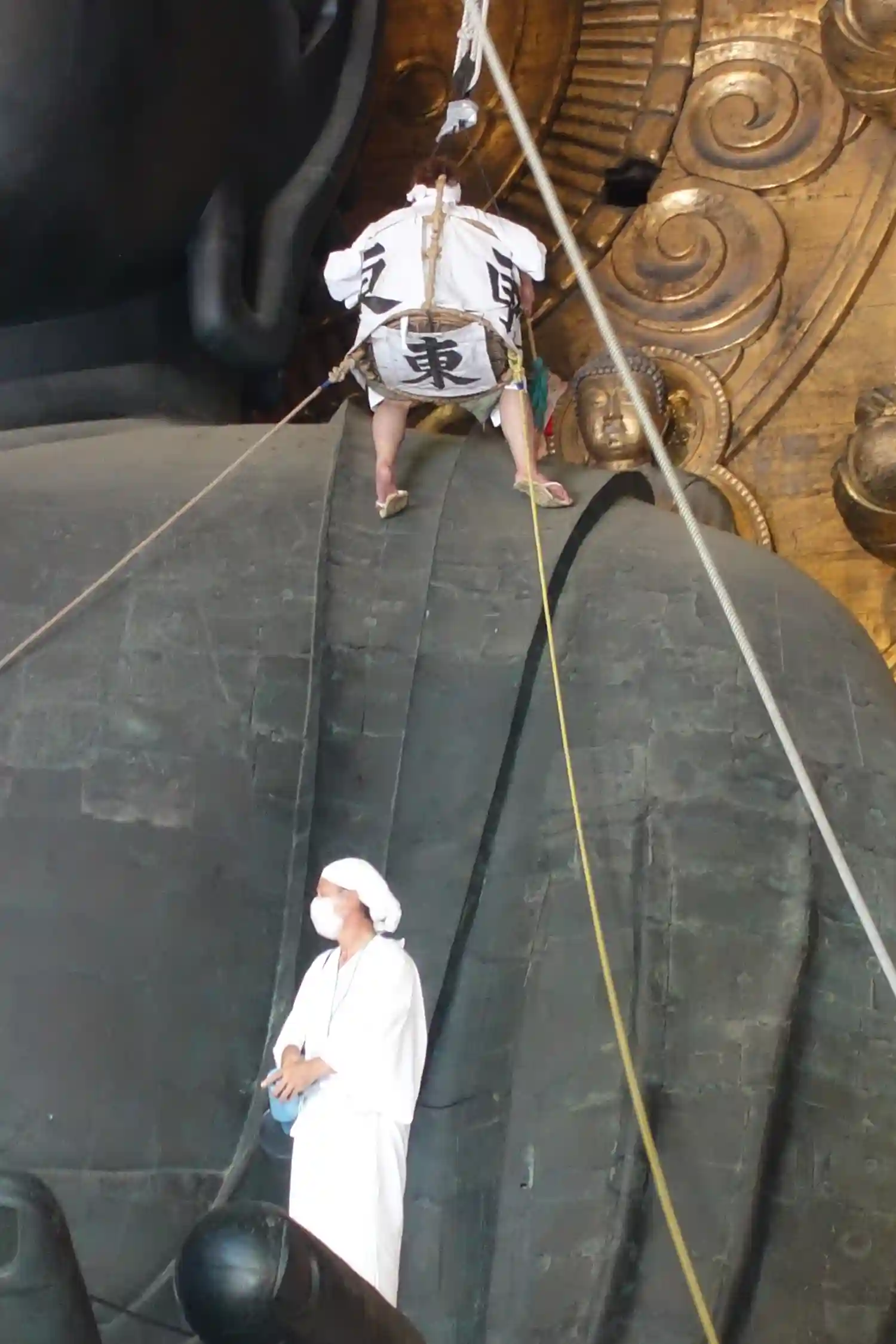 大仏様の周りを西・中・東のゴンドラに乗った方がハタキで埃を落とします