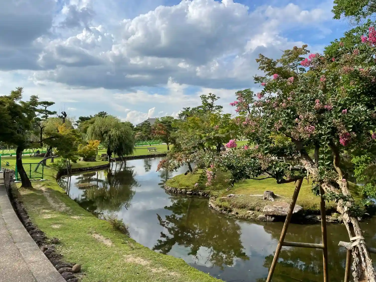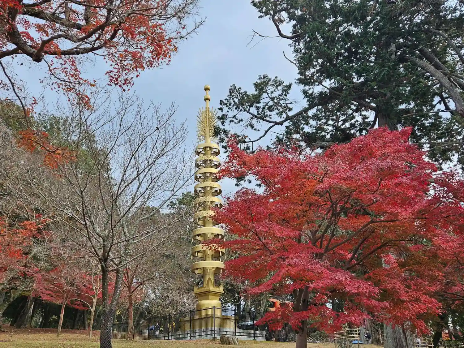 本当は春日野園地から見るのが一番見やすいらしいですが、国際フォーラムの庭園から見ました