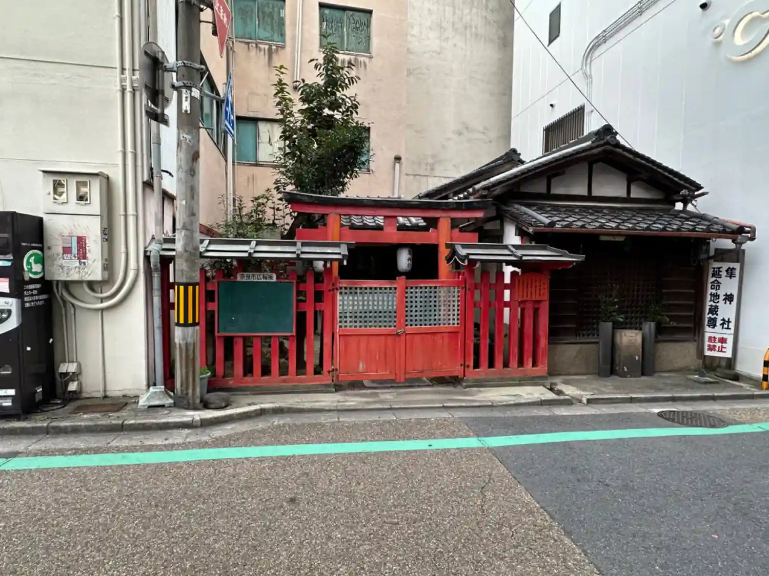 近鉄奈良駅の辺りをご飯屋さんを散策しながらブラブラしていたら、小さな交差点に突然赤い鳥居が現れたの…