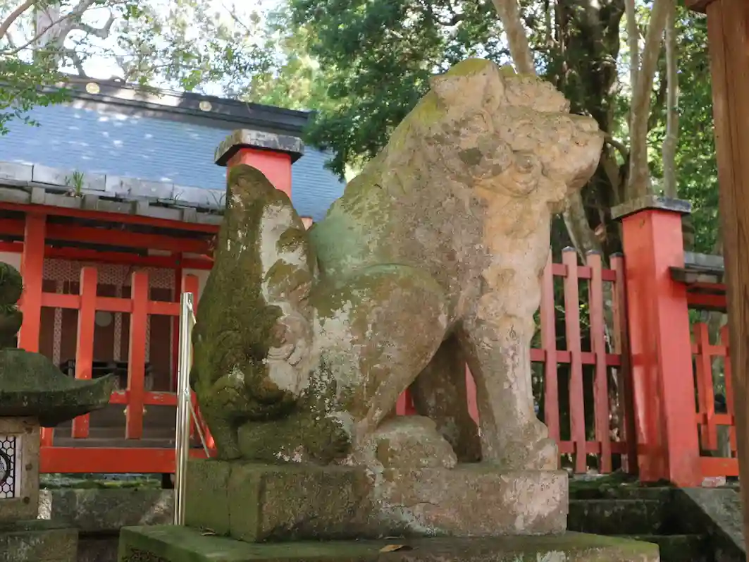 魅力的な苔の飾りを纏った狛犬さんに出会えてとても嬉しい。