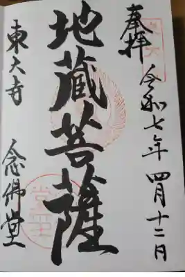 1枚東大寺 念仏堂周辺の御朱印