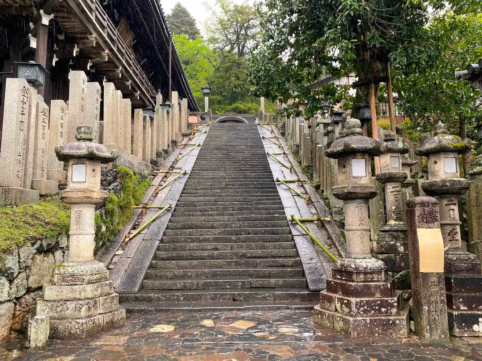 先日も激しい雨天でしたが、また明日も雨の予報。二月堂への参道は、綺麗な黒石の石段でしたが、雨でよく滑りました。気をつけながら参拝したいと思います。