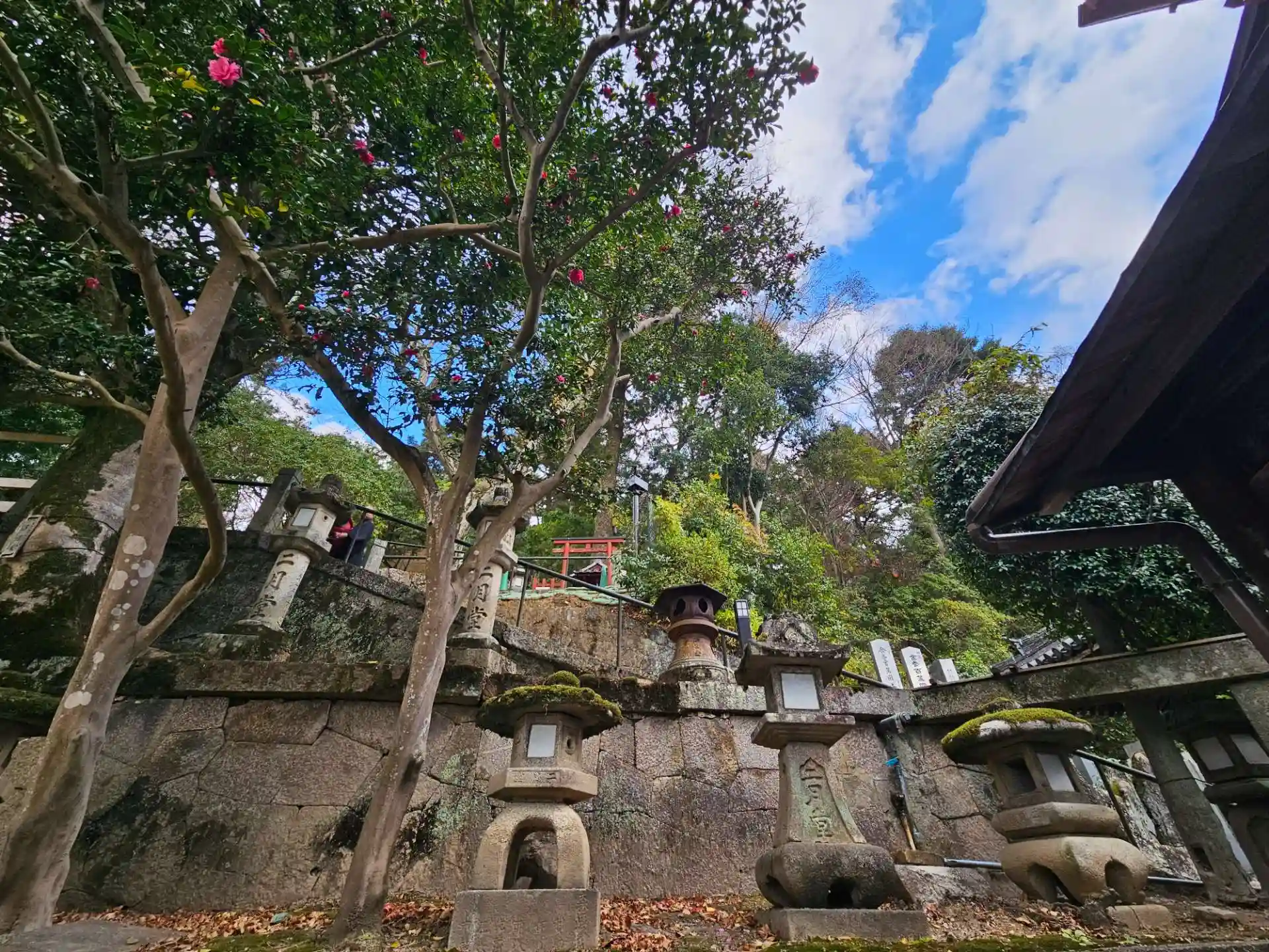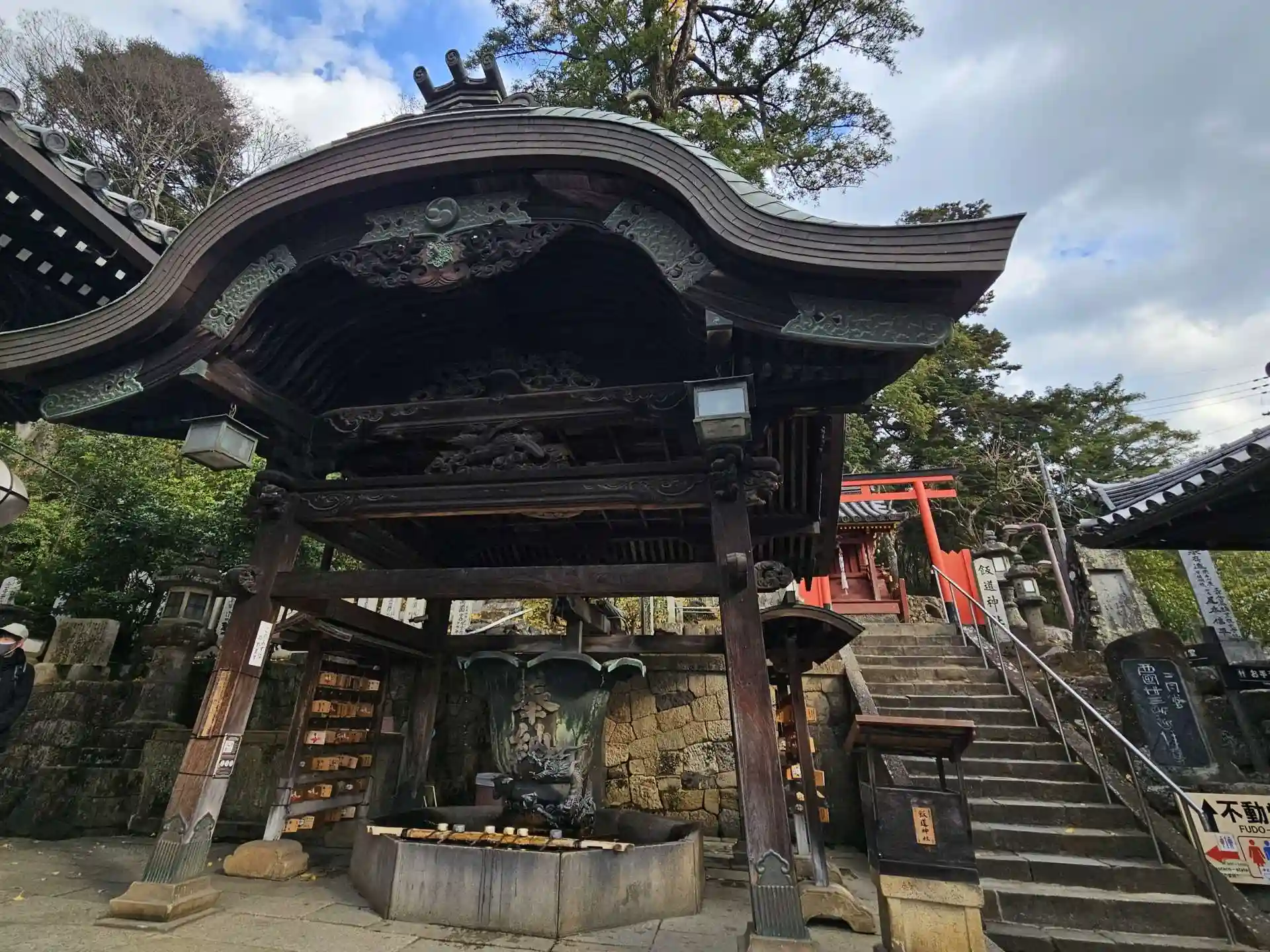 不動堂から階段をおり、こちらへ。