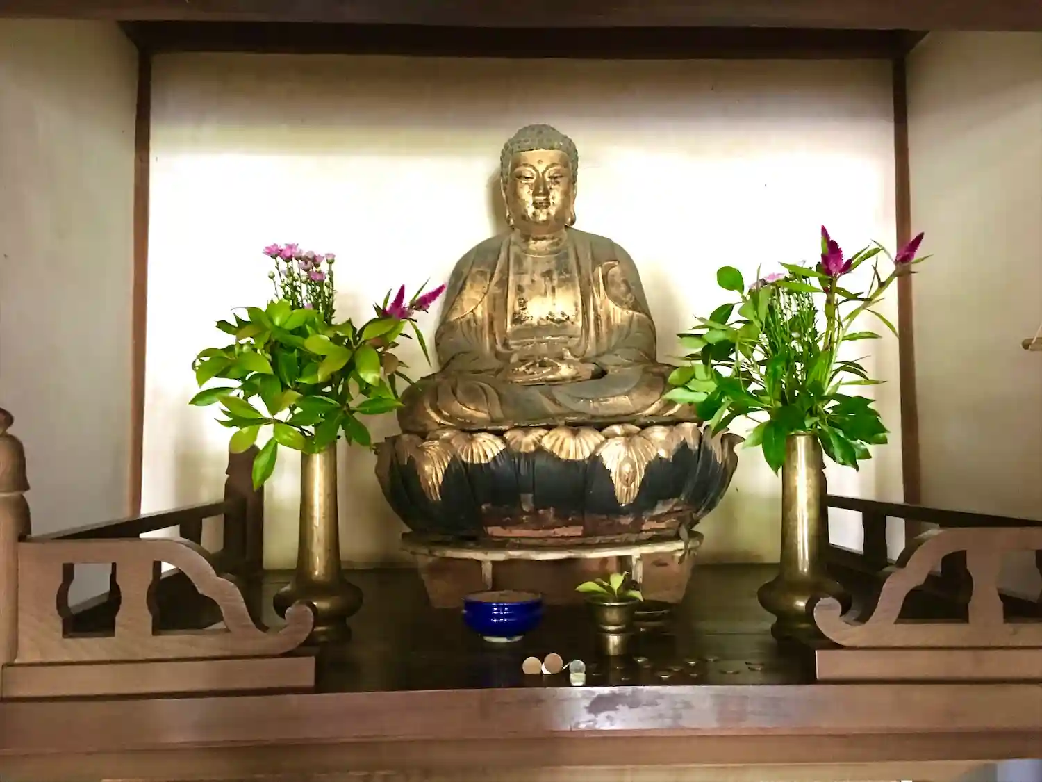 阿弥陀三尊は、座った位置から拝むと今でも助けていただけるように、いつでも行くぞと感じられます。