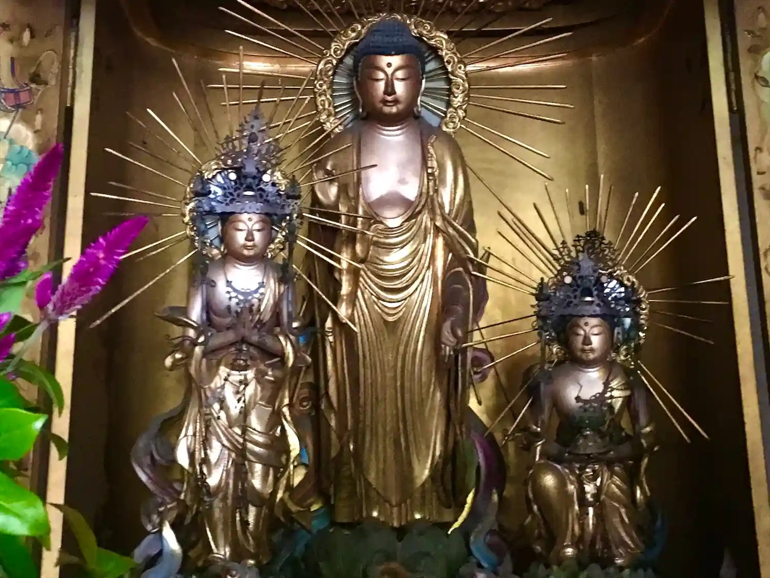 是非見てくださいと堂内左奥へ案内いただき金色の厨子の中に納められた阿弥陀三尊像…