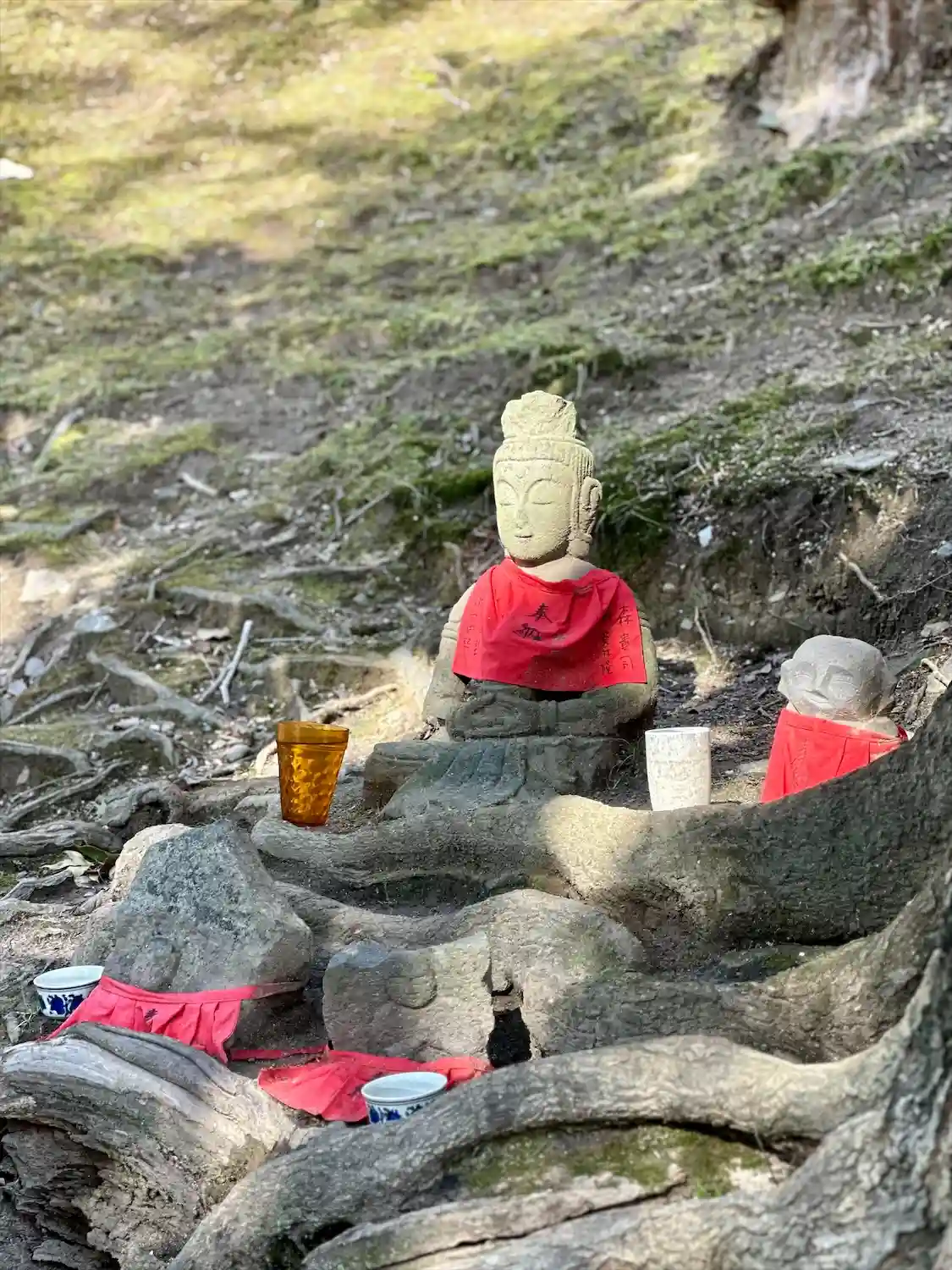 お不動さまの前でしばらくまったりさせていただきました。お地蔵さまやびんずるさま、相変わらずの優しい表情にほっとしました。いつ来てもこころ落ち着くいいところです。お不動さまのそばのお札の通りご真言をご唱上させていただきました☺️