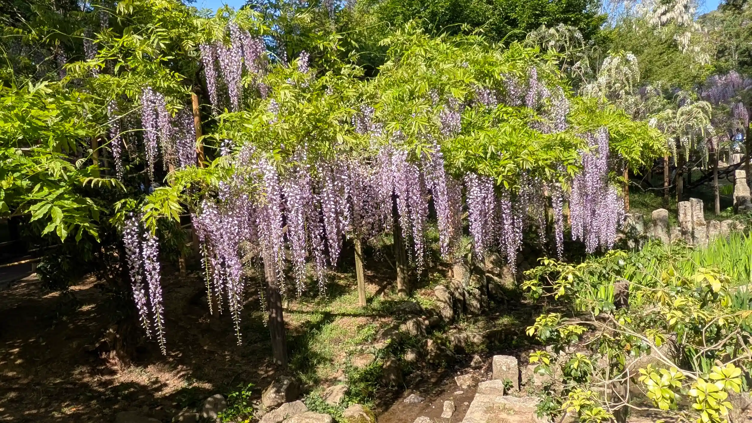 春日大社参道の萬葉植物園。園内には柿本人麻呂を御祭神とした「歌泉堂」があり、また旧春日大社板倉の「円窓(重要文化財)」があります。藤原氏の氏神さまの面目躍如といった感じで園内の藤の見事さには感動です😍京都は植物園でも藤弱いからなぁ・・・ここは毎年でも来たくなるかも🤗ちなみに園内の植物は万葉集に詠まれた草木を中心に300種もあるのだそう😲9月ごろの秋の七草や紅葉も良さげです。