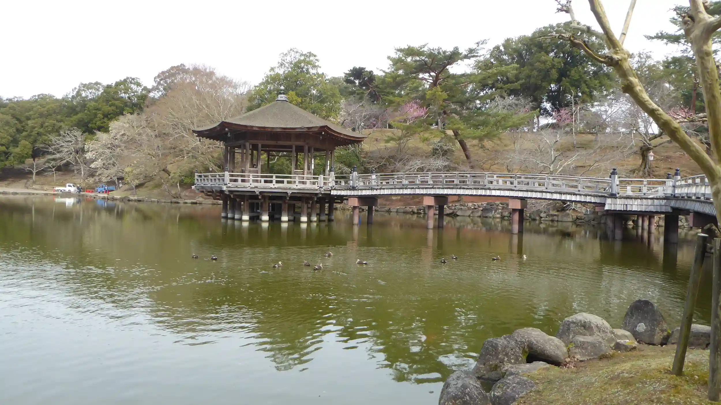 万葉植物園・荷茶屋の前、水谷川が飛火野へ分水される流れに架かる橋。