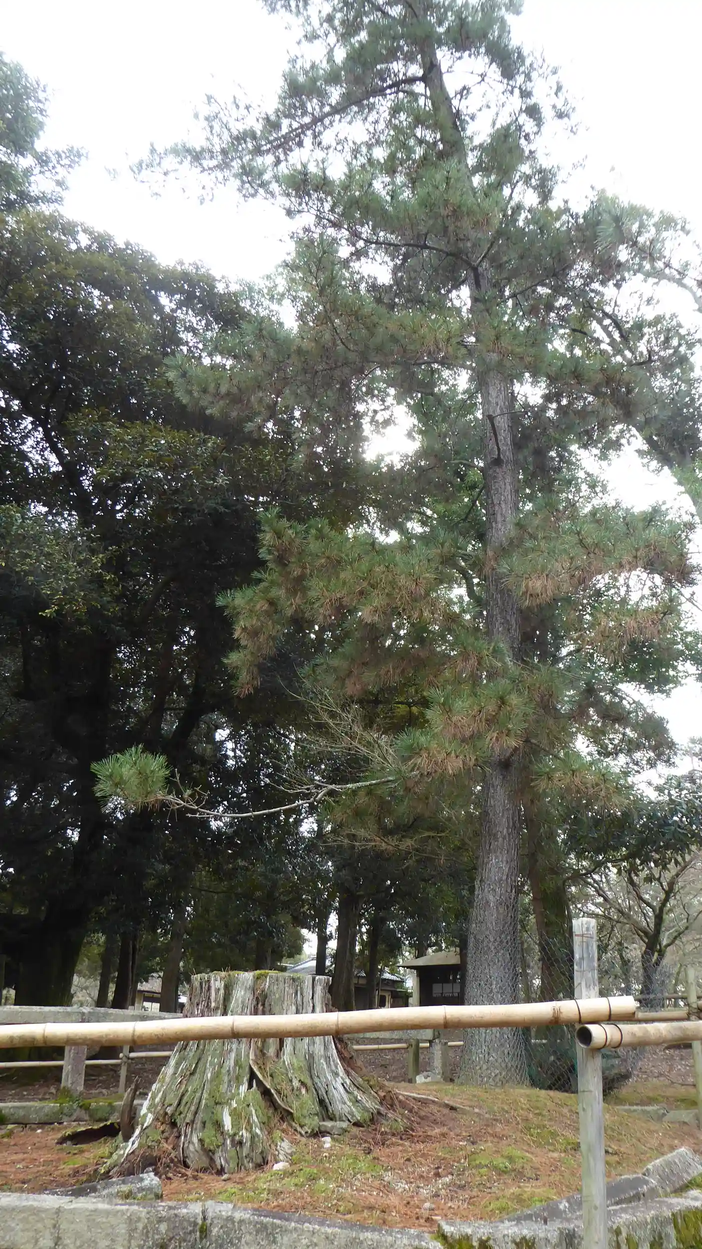 春日の神の姿が現れたという、周囲3.3m樹高18m、樹齢約300年の黒松であったが、平成になって枯死し、後継樹が育っています。