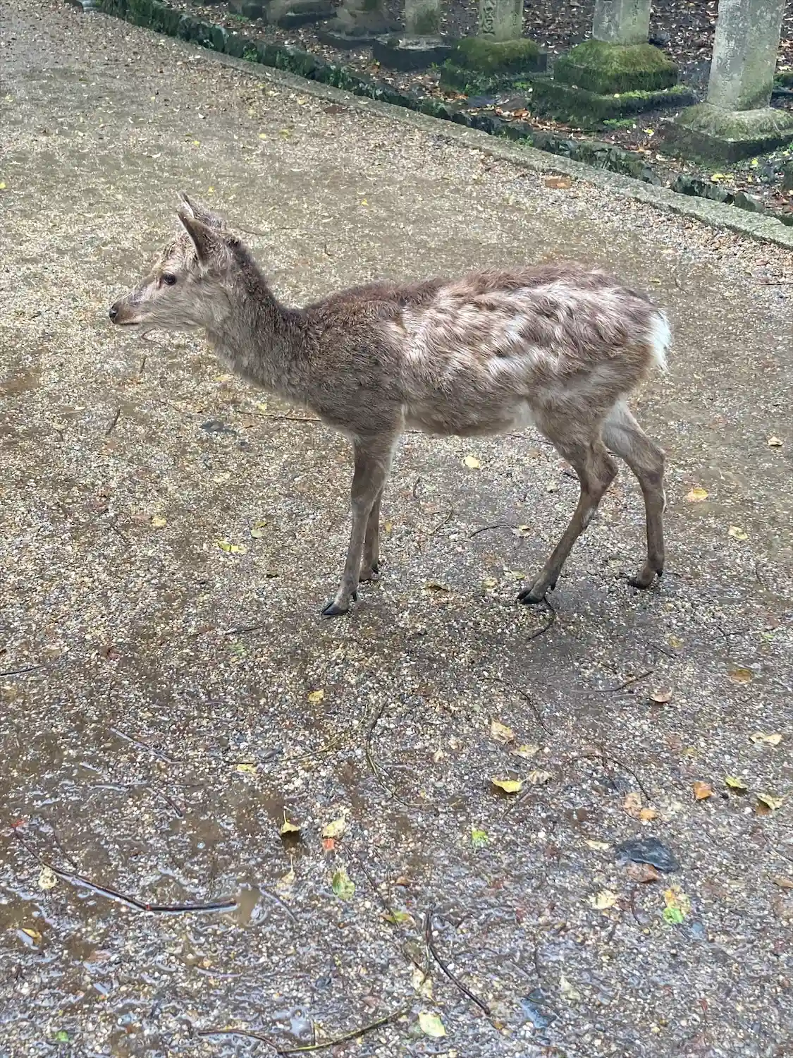 雨の中山道を登り、ブームも裾も泥でグズグズになりながら参拝させていただきました。鹿さん、いました。藤が綺麗に咲いてました。