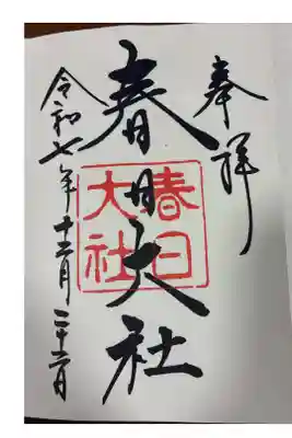 「春日大社」の墨書きに神社印が重ねられているシンプルな御朱印です。