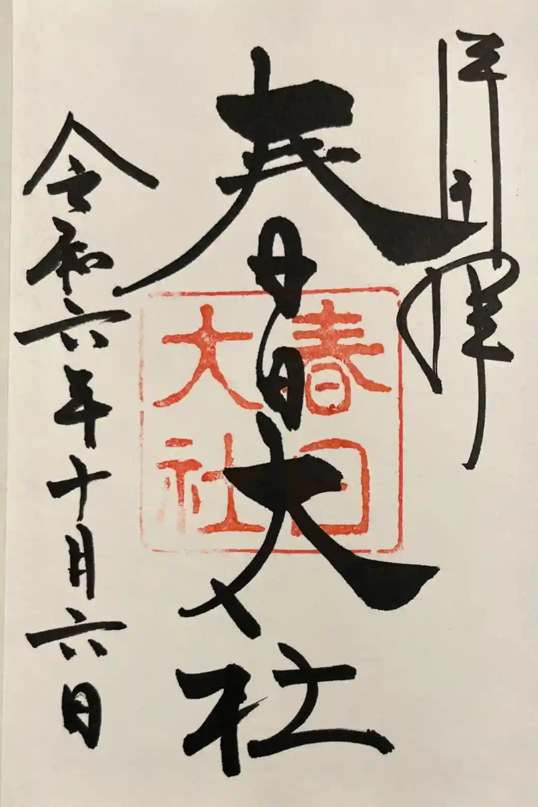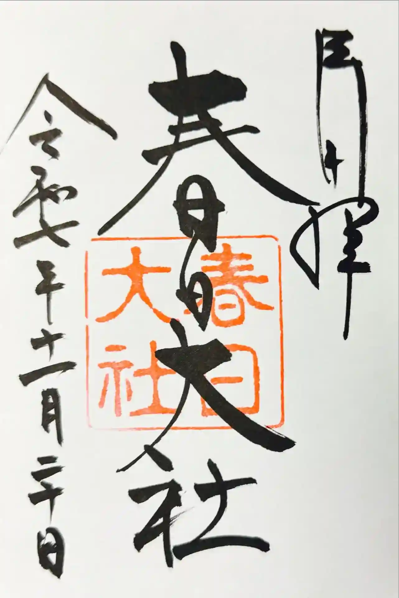 「春日大社」の墨書きに神社印が重ねられているシンプルな御朱印です。