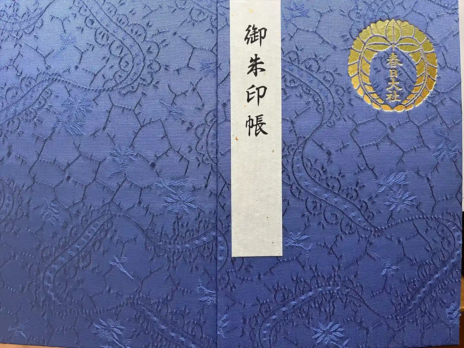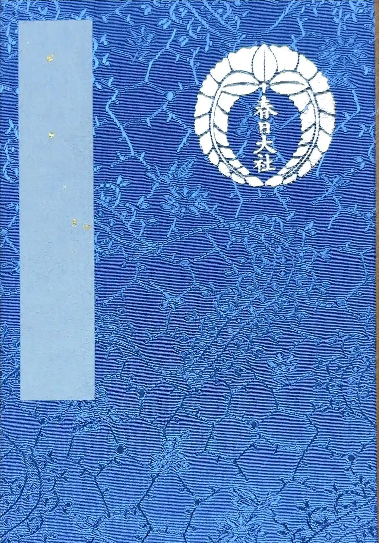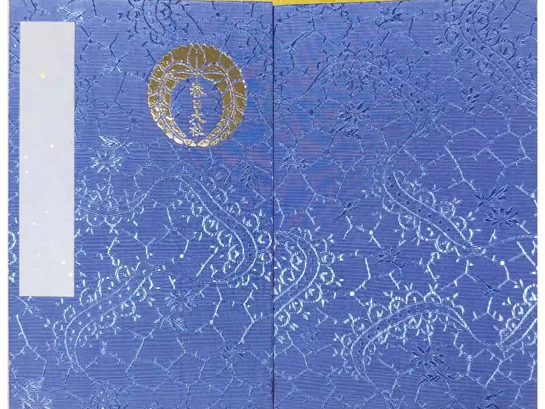 表紙の右上に御神紋の下り藤が金色で箔押しされています。