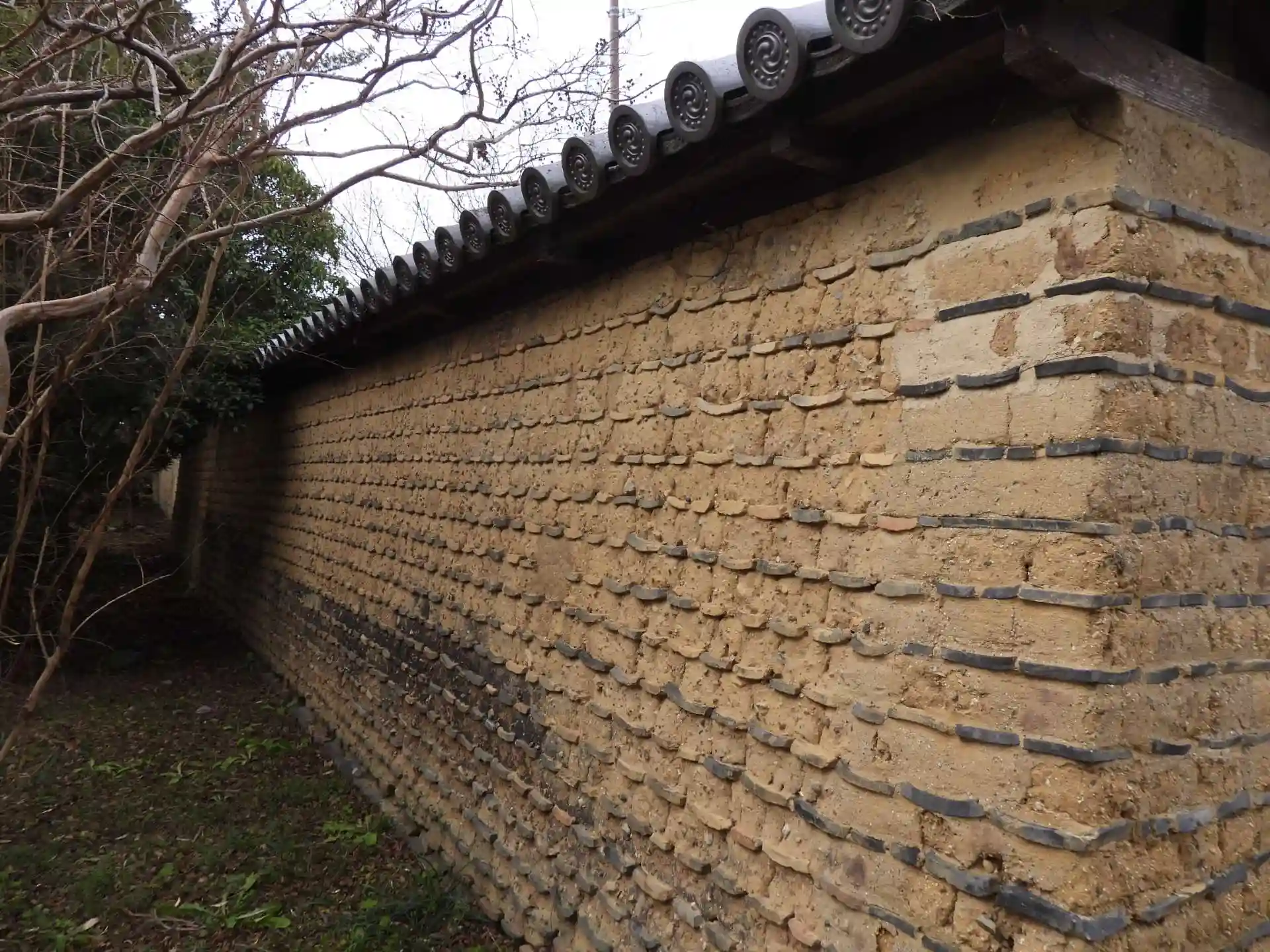 参道途中:奈良時代からの土壁でしょうか?