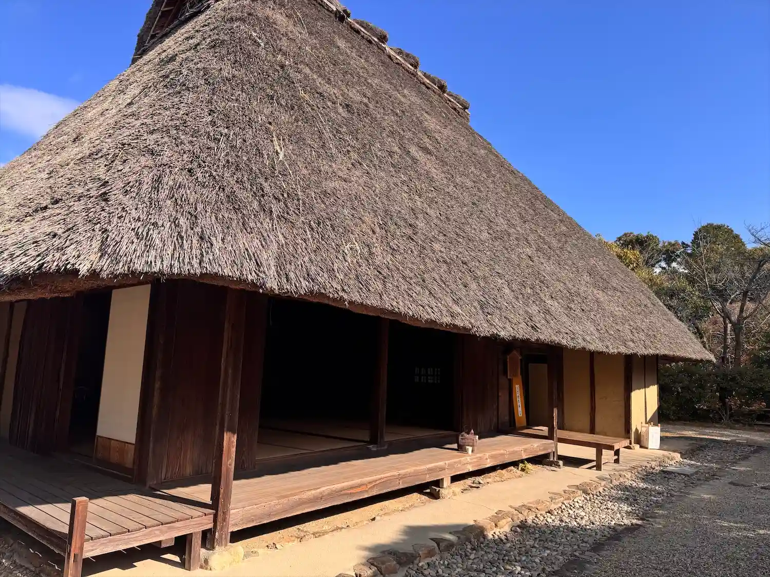 ほっこりと茅葺き屋根の縁側に座り、HOTレモン水を飲ませて頂きました。