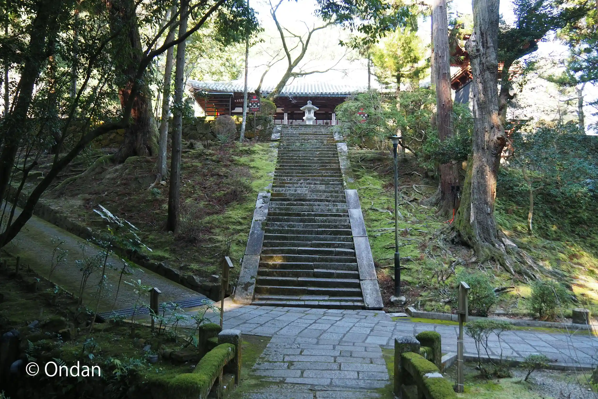 参道から右に折れて石段を登ると本堂へ。写真では入り口側は右。