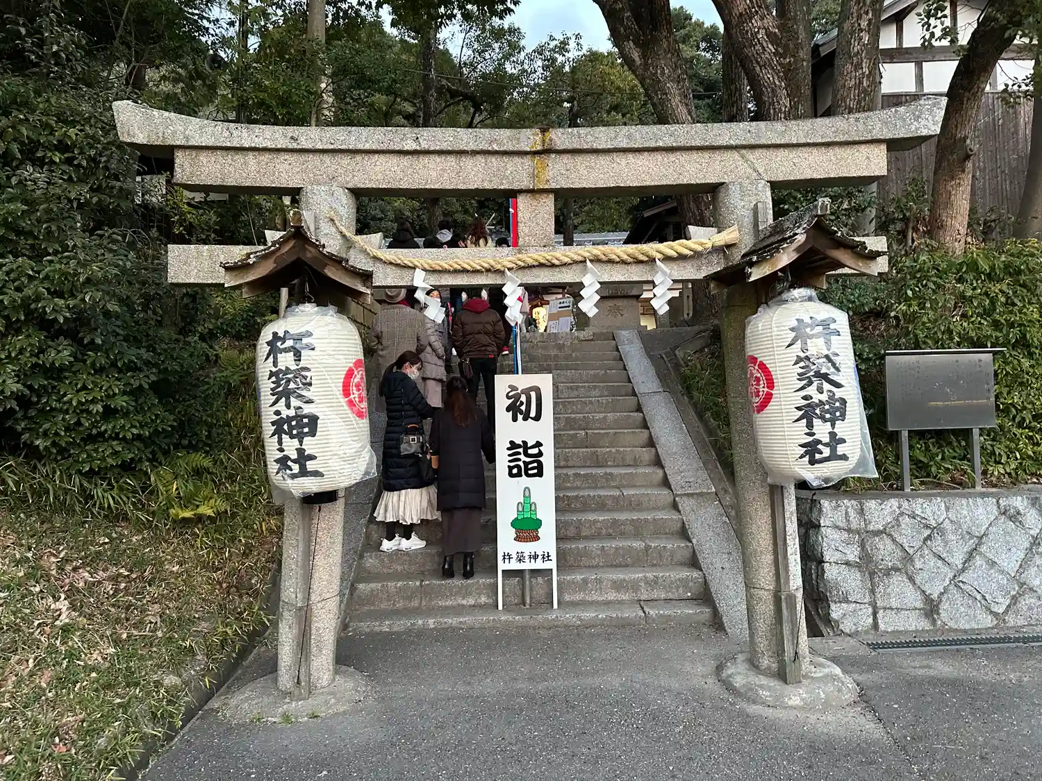 境内では、氏子の方たちがとんど祭の準備をされていました、平日の雨にもかかわらず、参拝の方もいらっし…