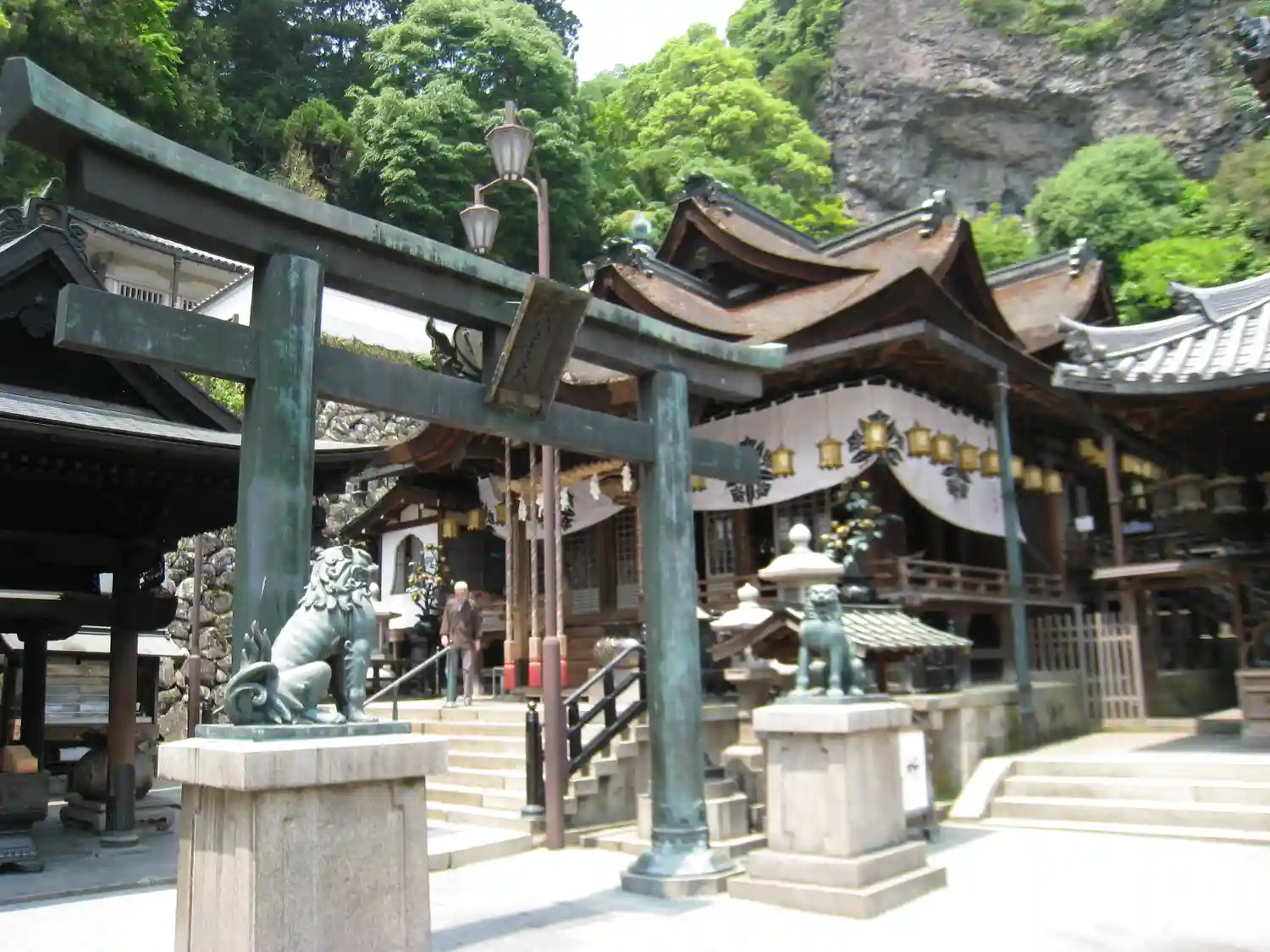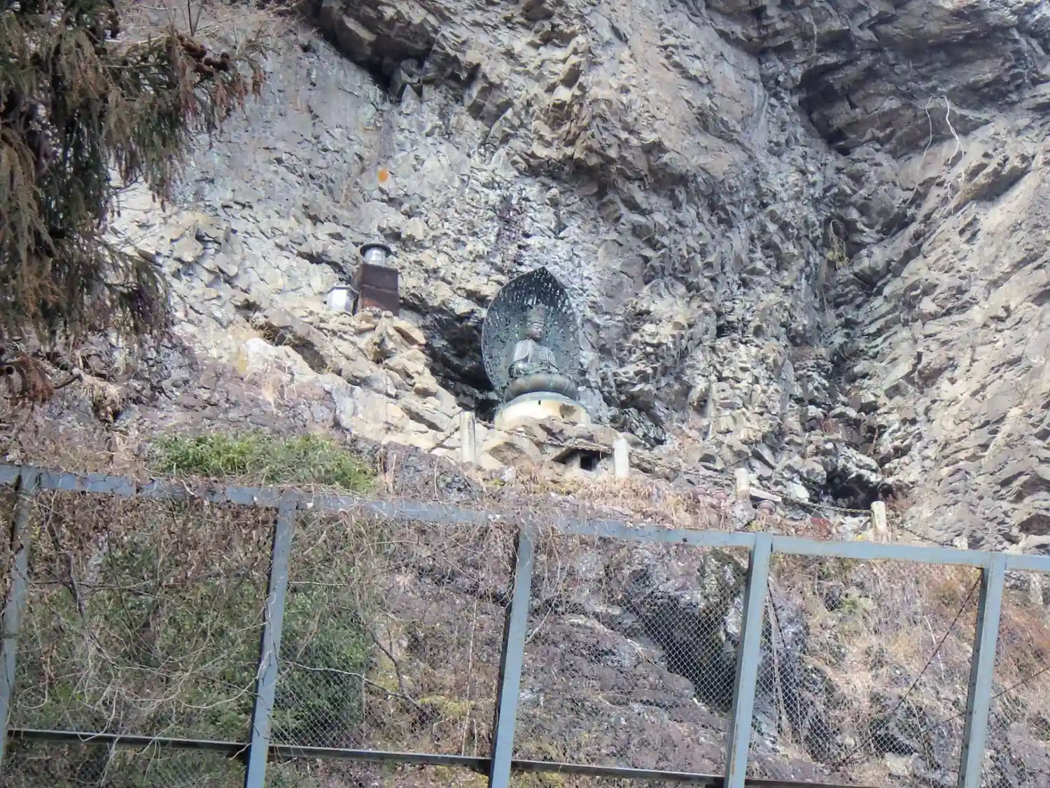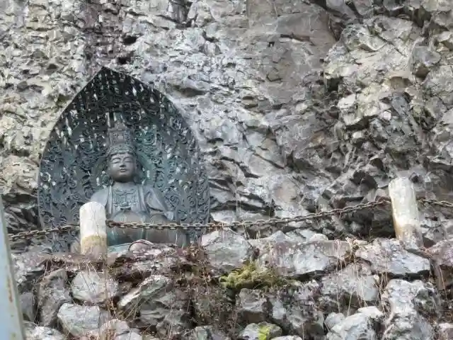 本殿の後方は岩壁~そこにも像がありました😲