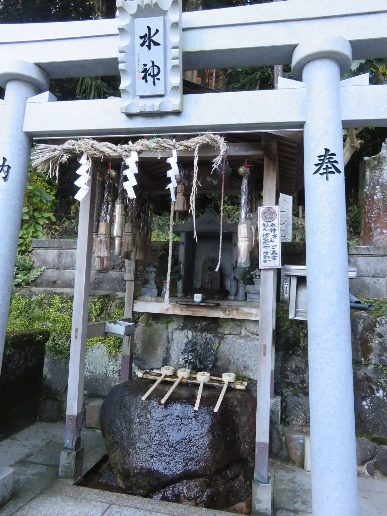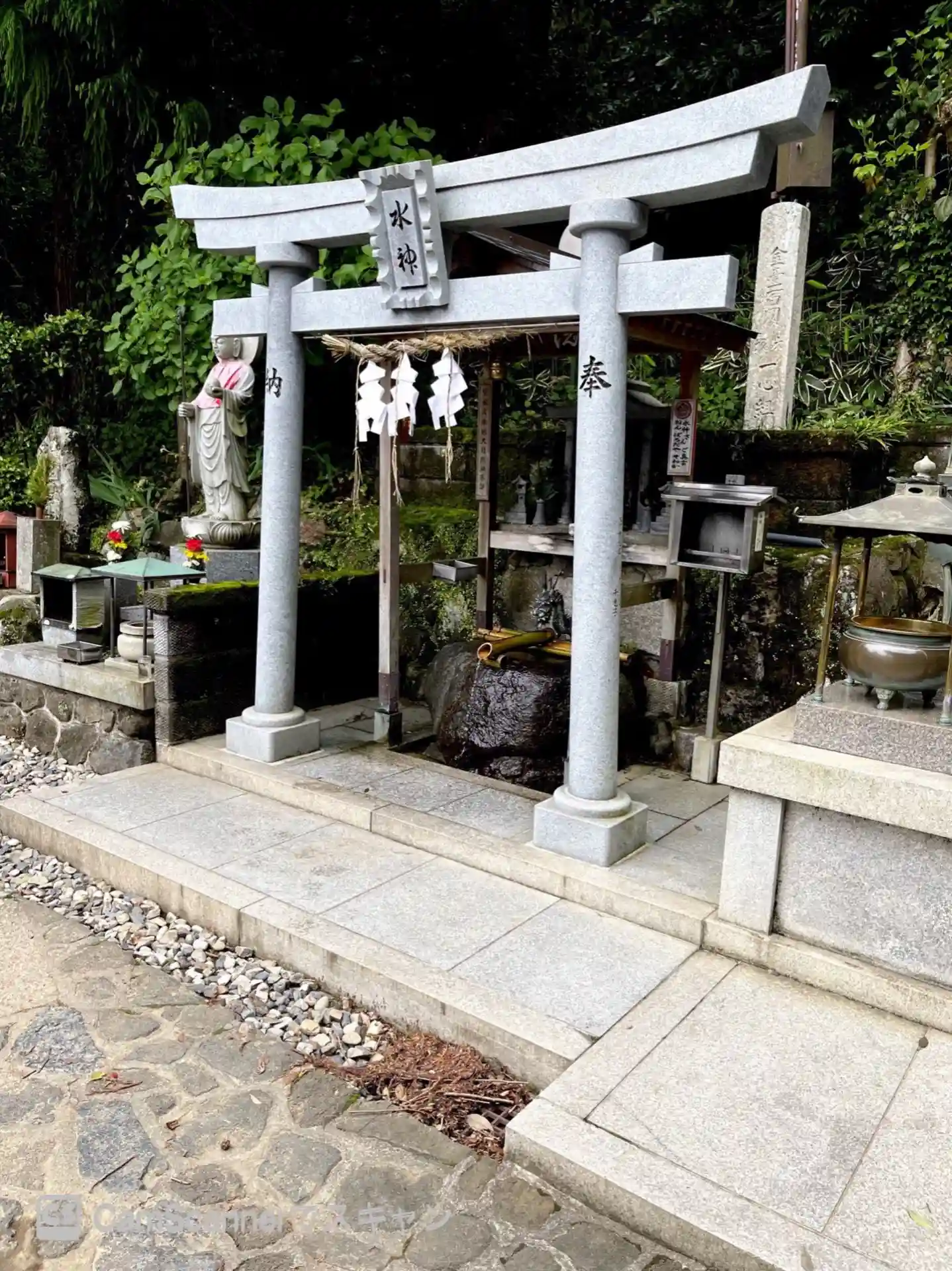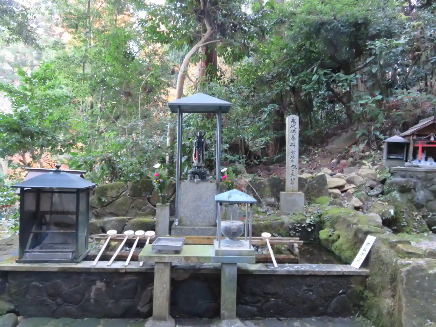 本殿の後方は岩壁~そこにも像がありました😲