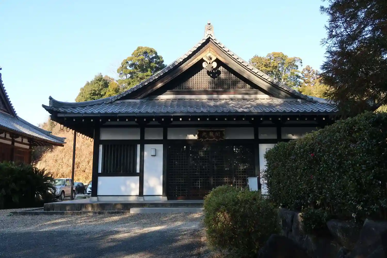 呼び鈴を押すとご住職の奥様(?)が出て来られて、本堂の拝観の件を伺うとご自由にどうぞと。併せて御朱印をお願いた所、ご住職は朝のお勤め中で小1時間くらい掛るとの事でしたので、また次回にさせて頂きました。庫裏の横にある光龍閣(客殿?)を覗くとご住職がお勤めされていました。
