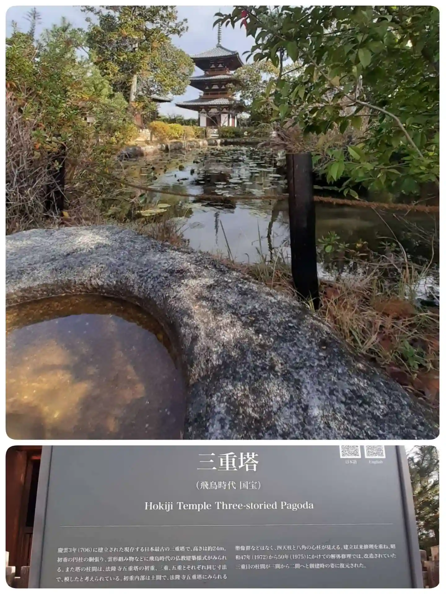 池を挟んで望む🔭 国宝『三重塔』