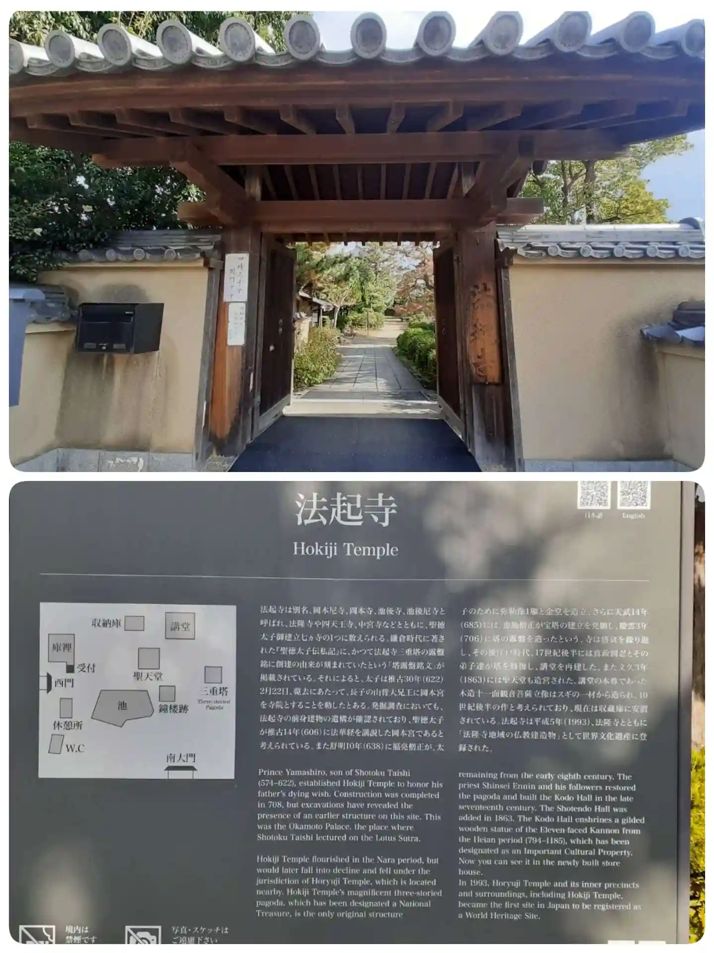 「法隆寺地域の仏教建造物」の一部として世界遺産に登録されている寺院🛕。