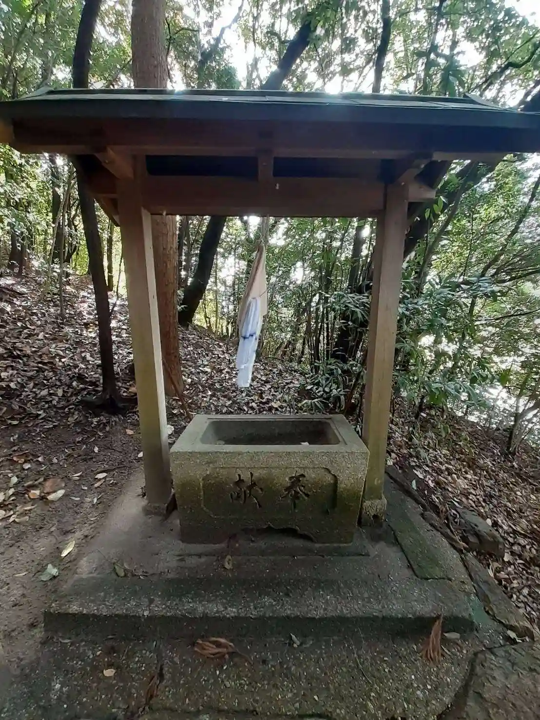 三井の産土神にして法輪寺の東北方に当たり斑鳩池へ上る道の東側丘上に鎮座し、須佐之男命をまつるが、由緒は不詳にして旧村社である。社殿は春日造り一間社、桧皮葺に銅板をかぶせ朱塗りである。