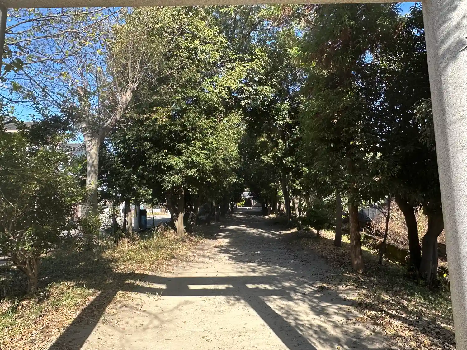 参道は頭上注意です!参道のどんぐりがきれいに両端にほうきで履かれていましたが、時頼の風で頭に降って…