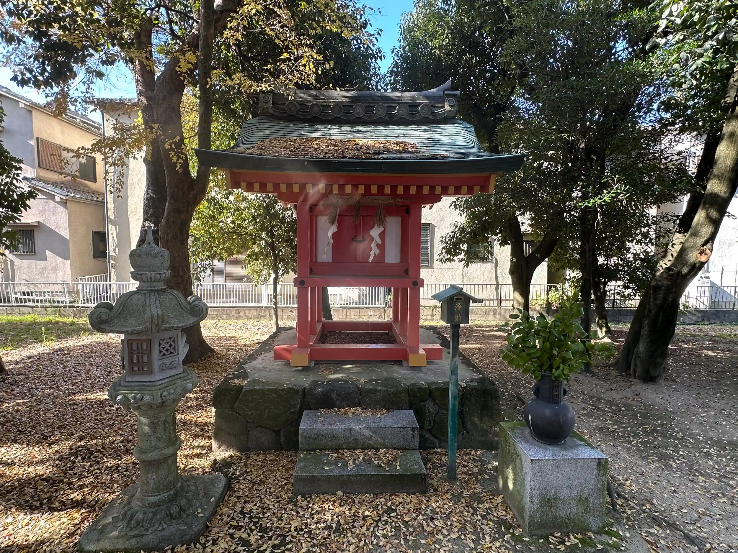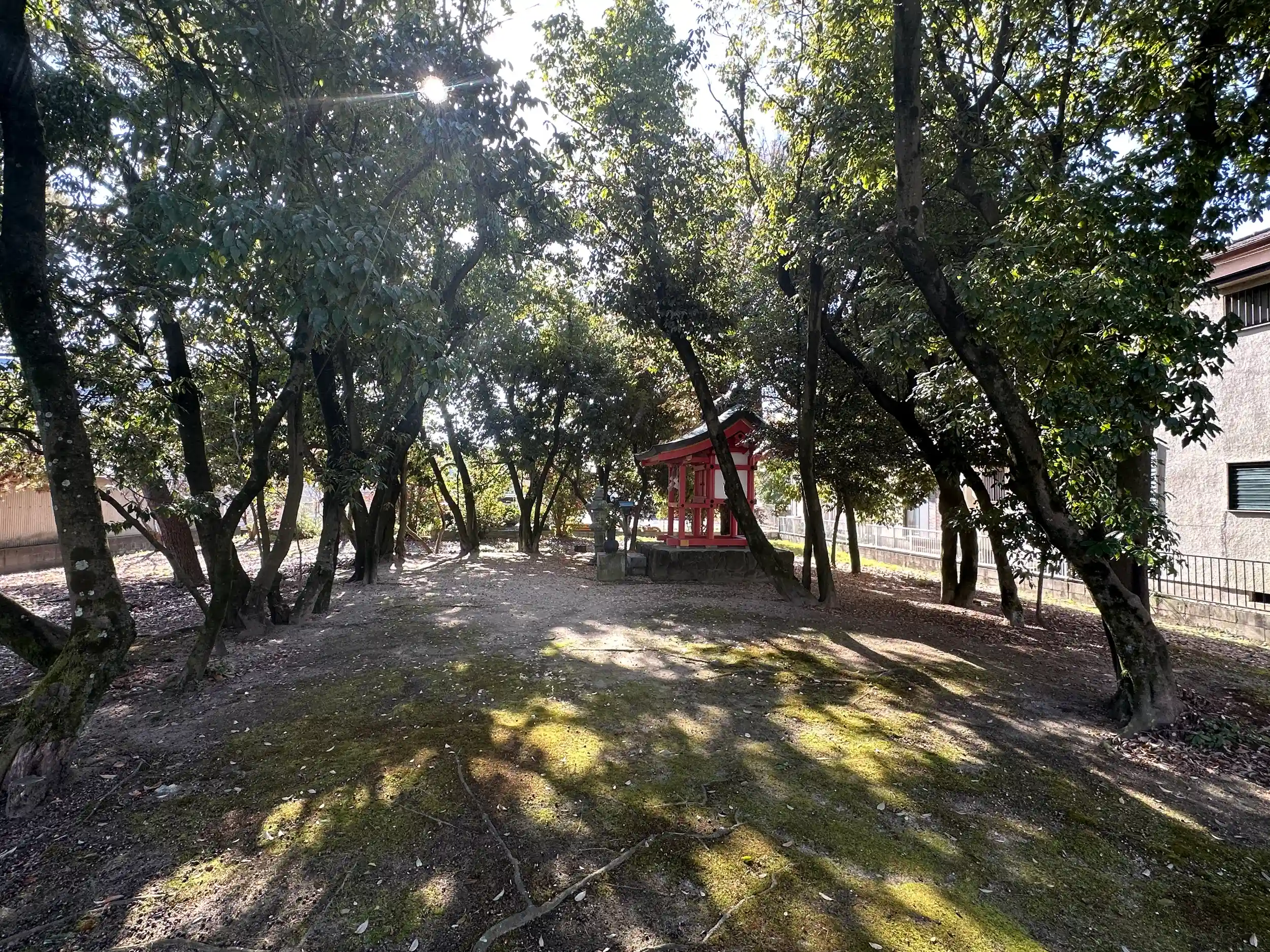 向かいの「辰市神社」を創建した人物とされる中臣時風(なかとみのときふう)・中臣秀行(ひでつら)を祀っています。 鳥居はありません 一見公園のように感じます